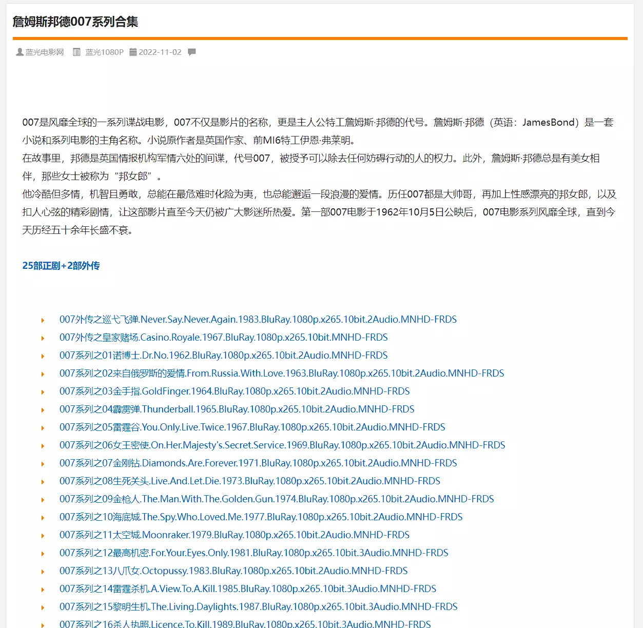其次就是该站针对很多内容做了合计整理,比如星爷、邦德、李连杰等等明星的作品,都是直接提供了对应的合计内容,真的是很良心了。
