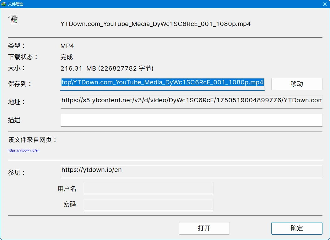 这个过程是站点服务器尝试从YouTube下载视频到服务器空间,等待进度完成之后,会自动调用你的下载器进行下载,而下载的链接则是站点服务器的链接地址,而不是传统的YouTube地址: