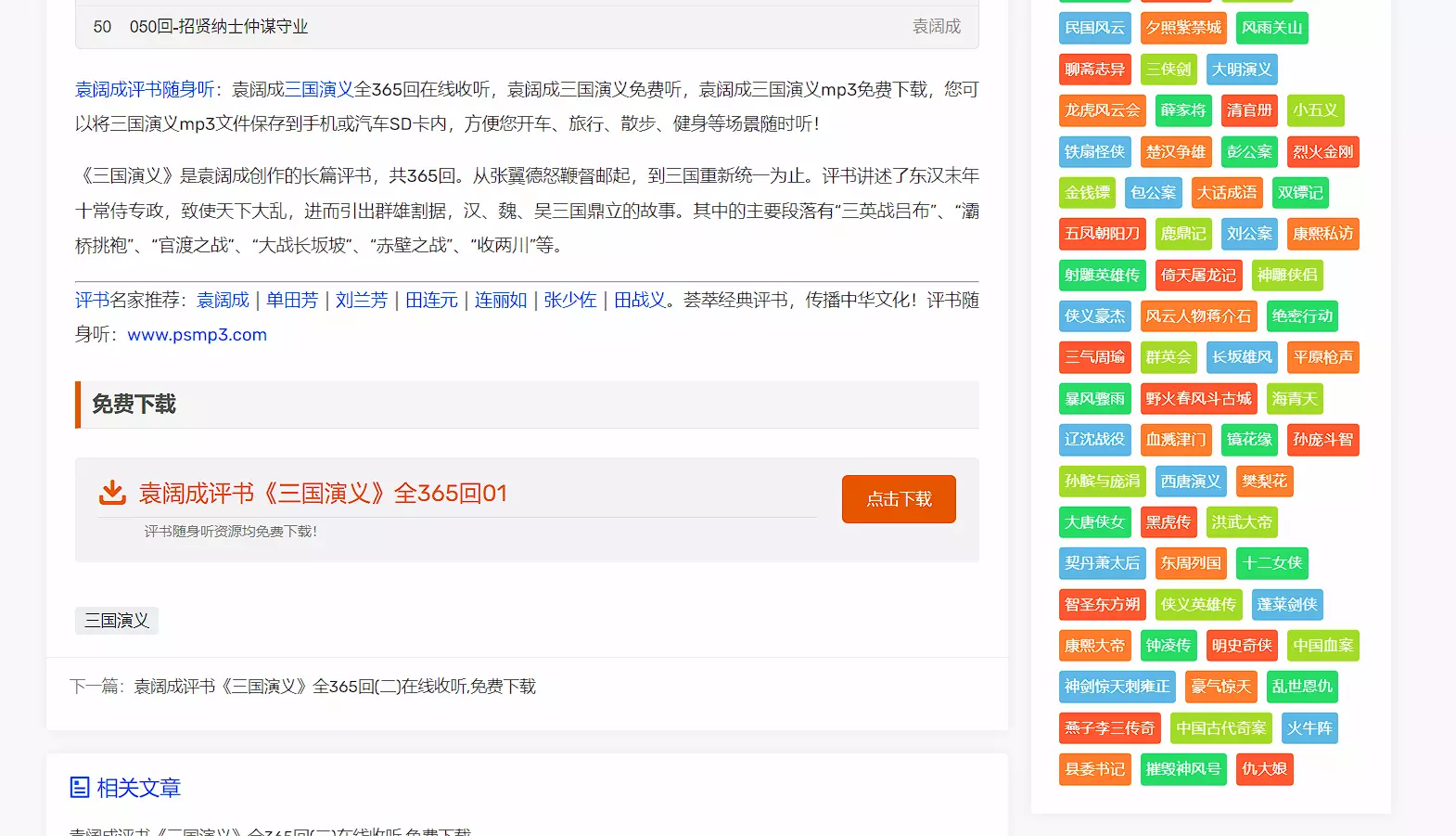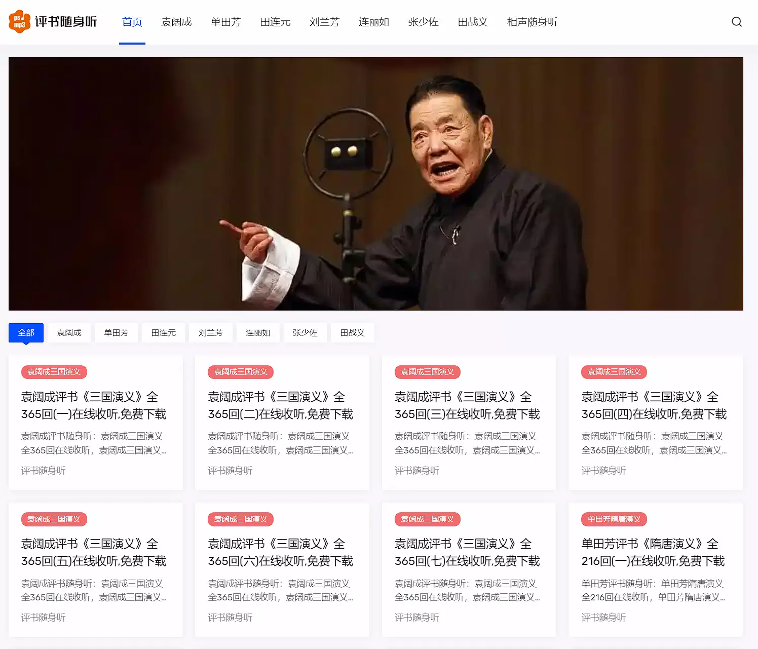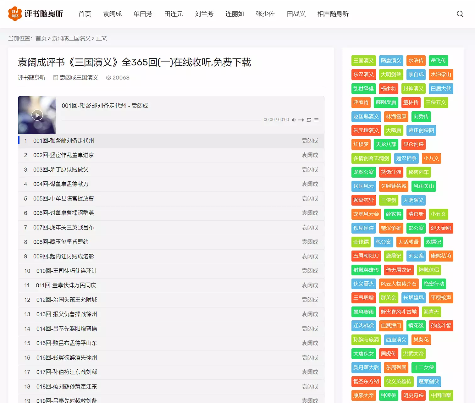 前段时间推荐了一个站点是关于相声的,想不到这里还有一个是评书的,看来这个站长是真的喜欢听书啊。