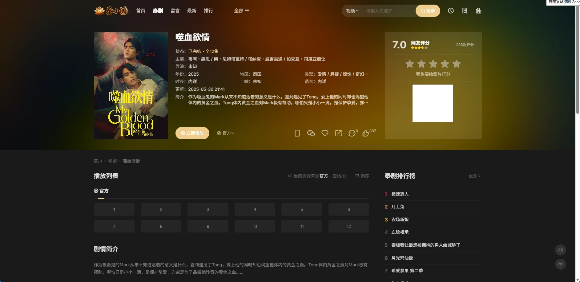 这个截图可以看作首页的所有内容了,没错,它的首页确实就是这么简单,虽然我看站点的布局,就是一个采集模板的样子,不过该站点就只是采集泰剧,可能只有一种情况,大概率就是为了方便自己吧。
