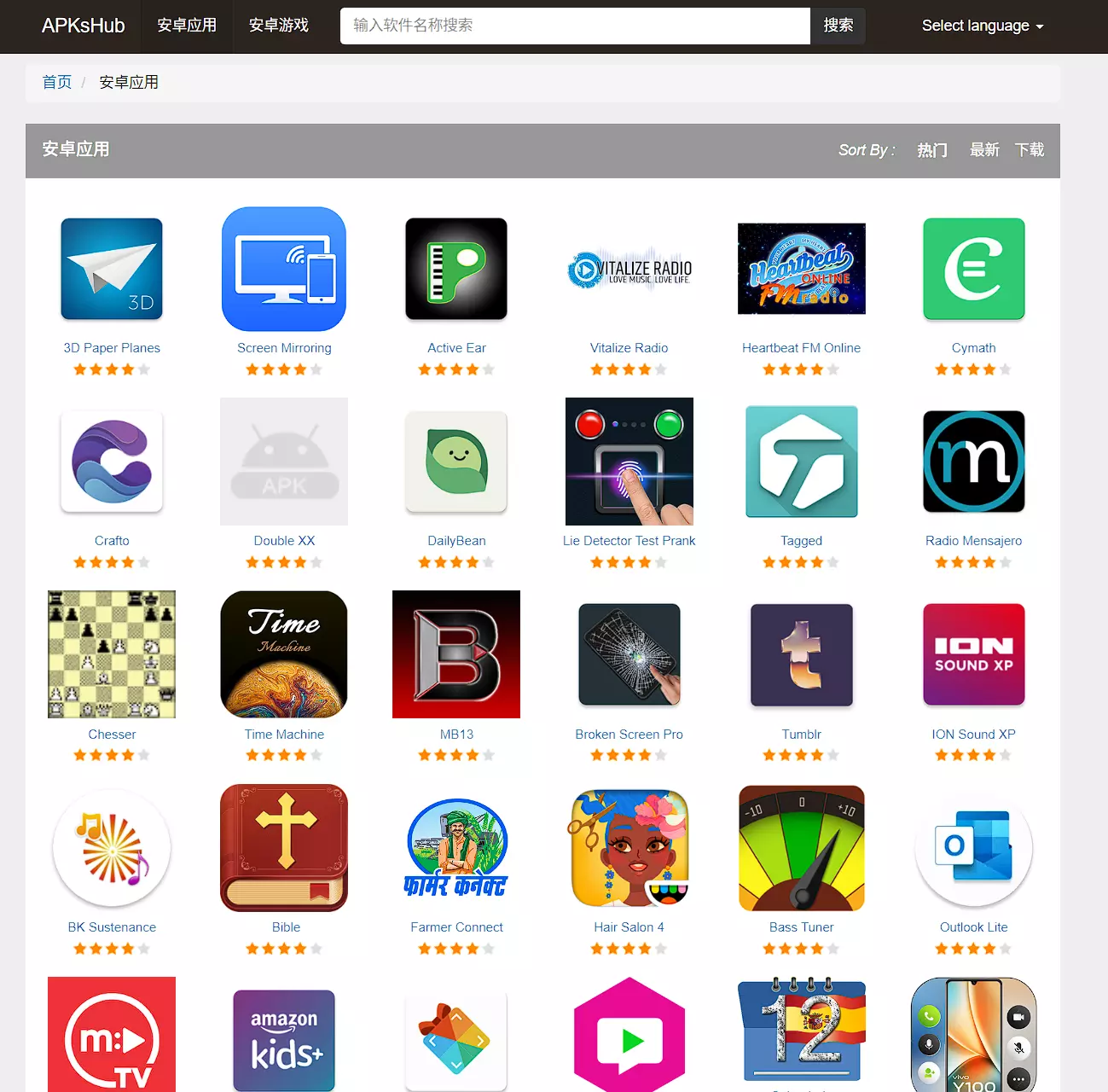 站点是一个安卓资源下载站点,可以下载大量的安卓应用。站点整体界面非常简洁,没有看到明显的广告内容。