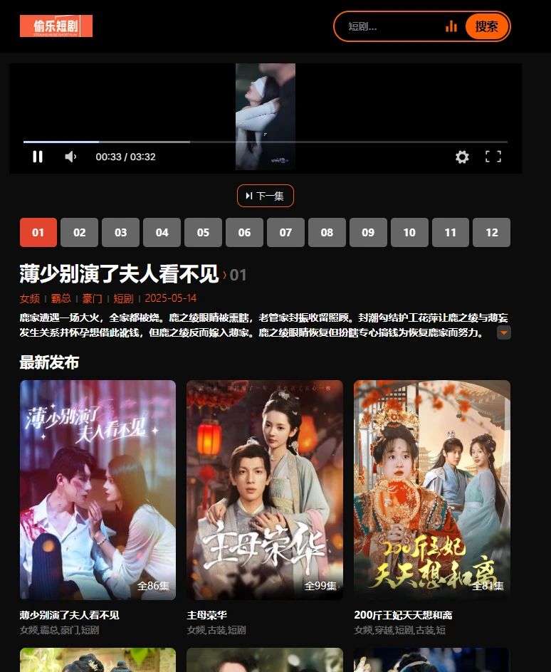 需要说明的就是,一开始以为该站点是一个正经的视频在线站点,毕竟短剧的视频体积不大,我还以为是自建服务器进行播放的,最后发现依然是采集站,所以请大家进一步思考是否收藏,毕竟采集站太多了,大同小异。