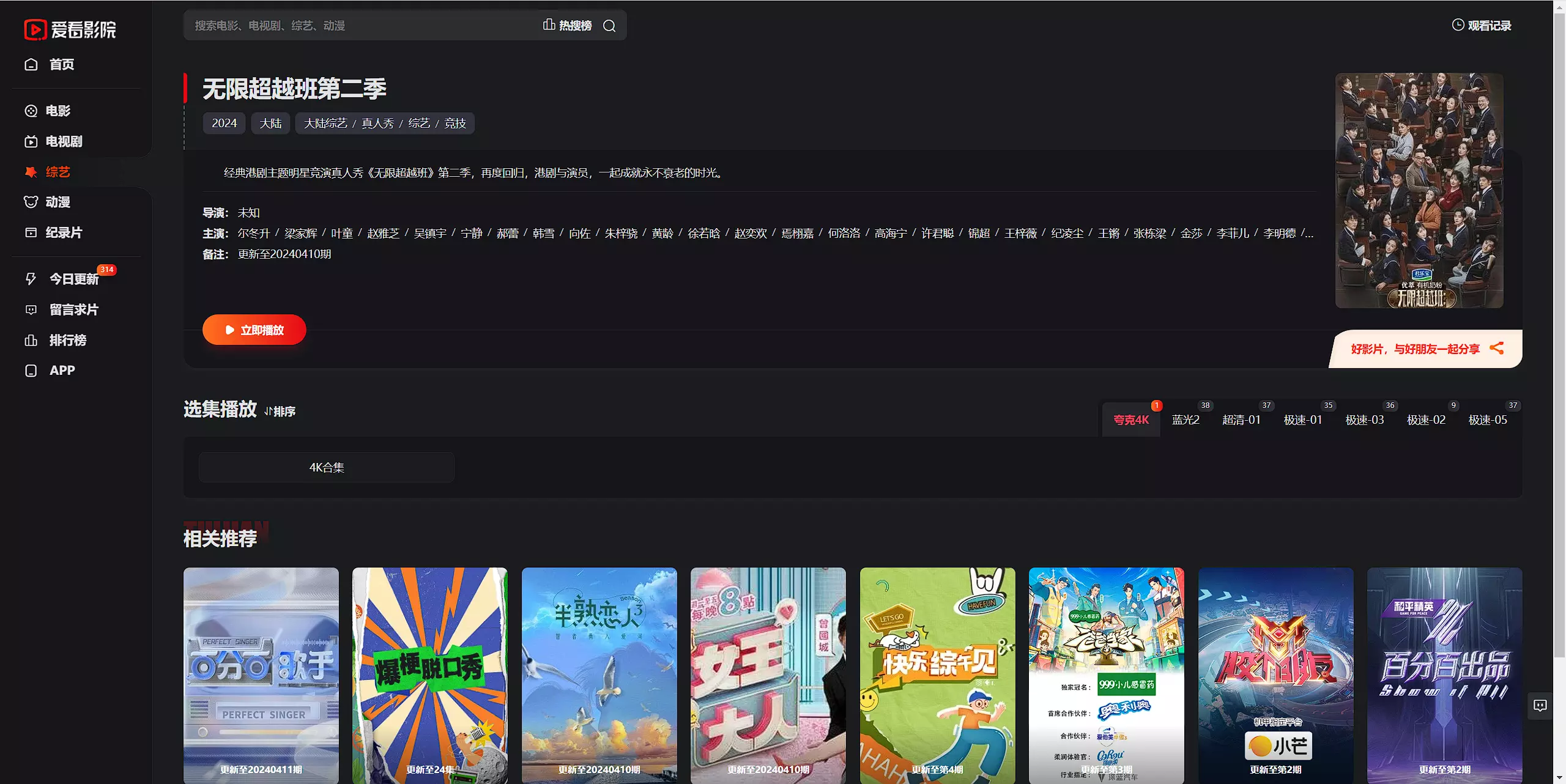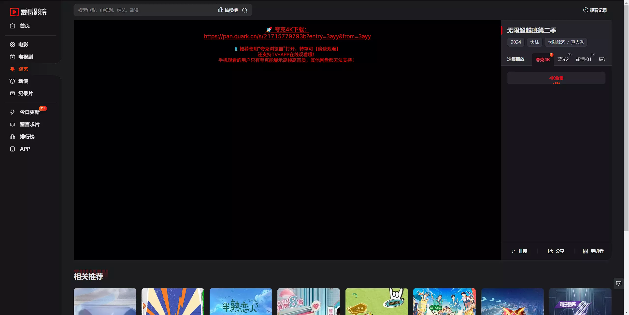 如标题所说,这个站点最大的好处就是播放源非常多,每个视频基本都有3个以上的播放源,而且部分影视内容提供了夸克网盘资源链接。