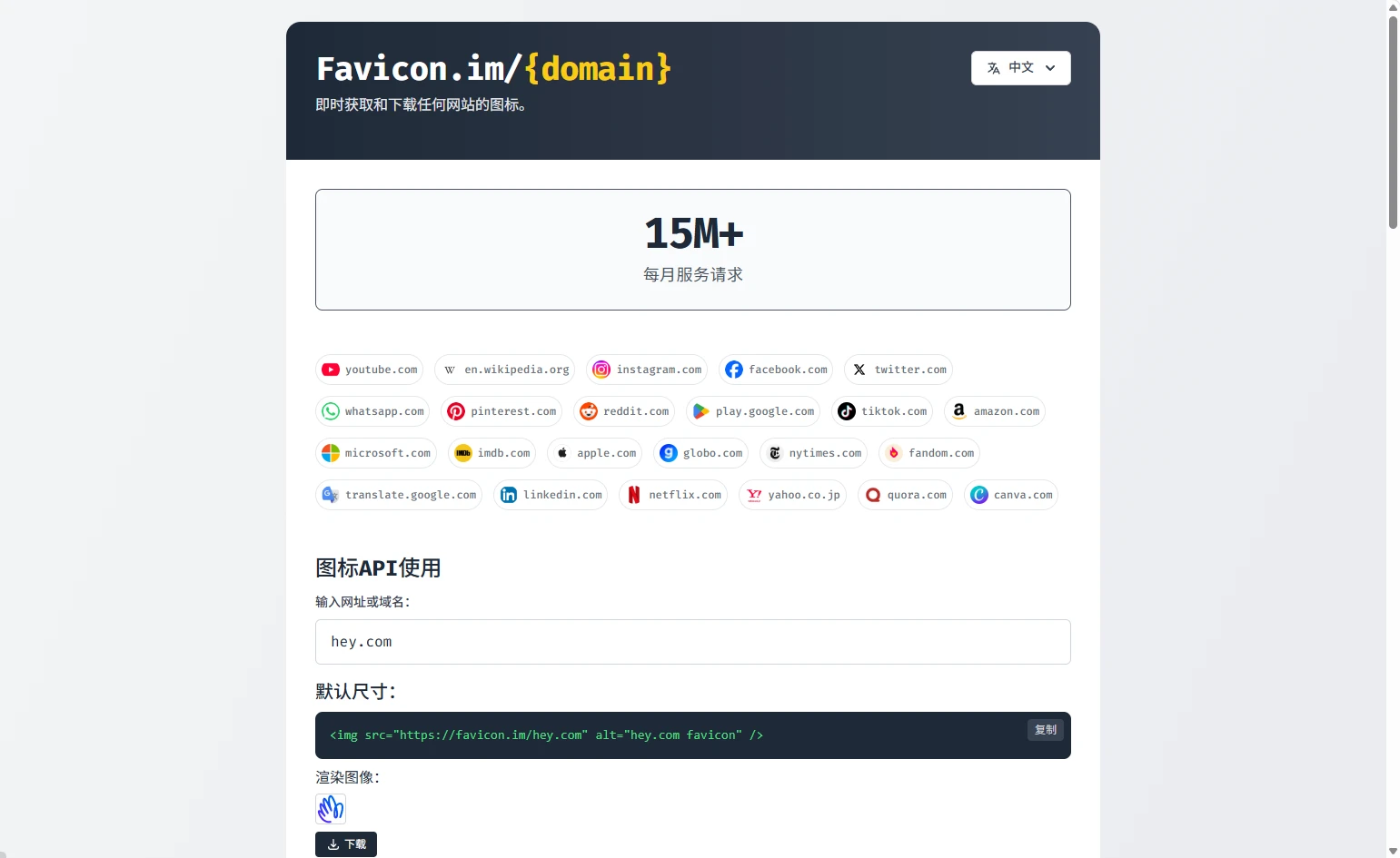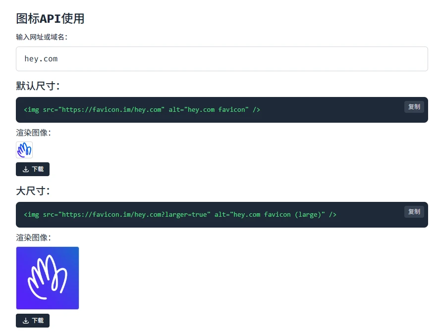 本文介绍的站点可以提供的功能就是通过一个连接的方式直接获取某个站点的icon图片链接,非常适合做导航站的朋友,下面是站点首页截图: