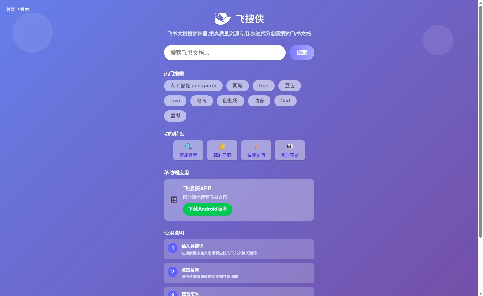 不过今天推荐的站点正好可以在某种程度上面解决这个问题,你可以直接通过该站点输入关键词来搜索相关的飞书文档内容并且获取对应的链接内容进行查看。