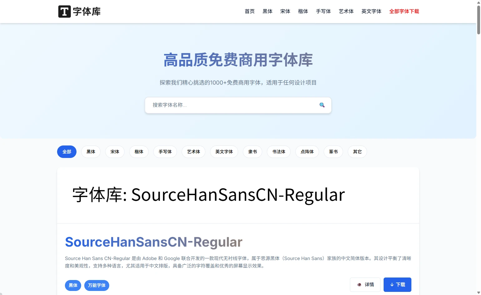 它提供了海量的免费商用字体,涵盖了从黑体、宋体到手写体、艺术体等各种风格,满足了不同场景下的设计需求,让创意不再因字体而受限。