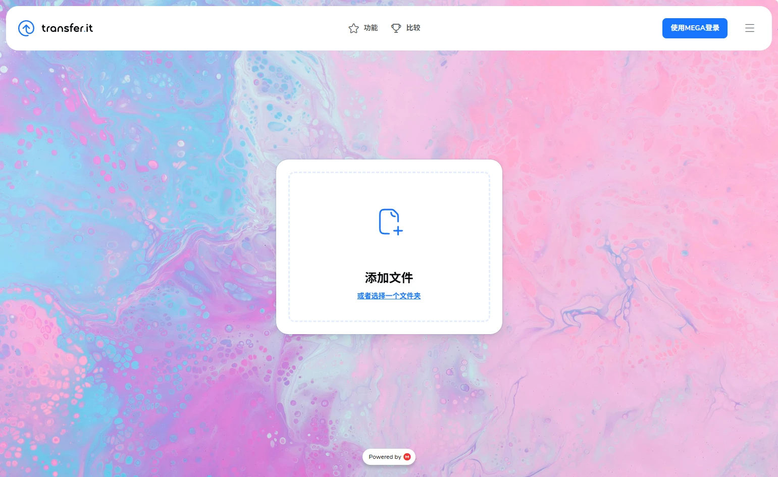 使用Transfer.it进行快速、简单的共享。选择MEGA来保护隐私、存储和控制功能。