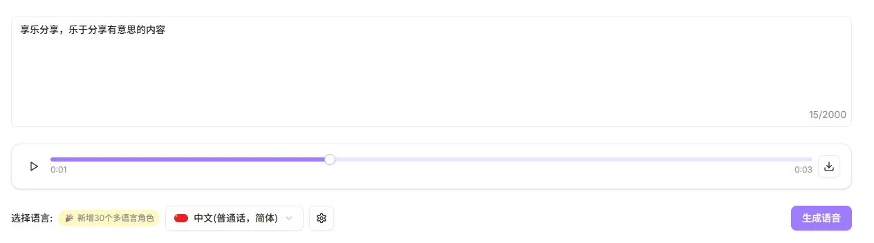 生成语音之后是会立马进行播放的,同时,生成的结果也支持直接下载。