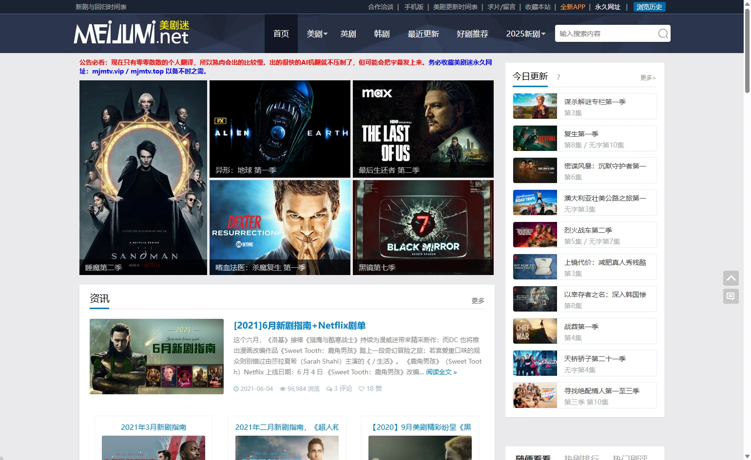 美剧迷是一个专注于提供欧美剧集资讯与资源的网站,它为美剧、英剧、韩剧爱好者打造了一个一站式的追剧平台。无论你是狂热的美剧迷,还是对英剧、韩剧情有独钟,美剧迷都能满足你的需求。