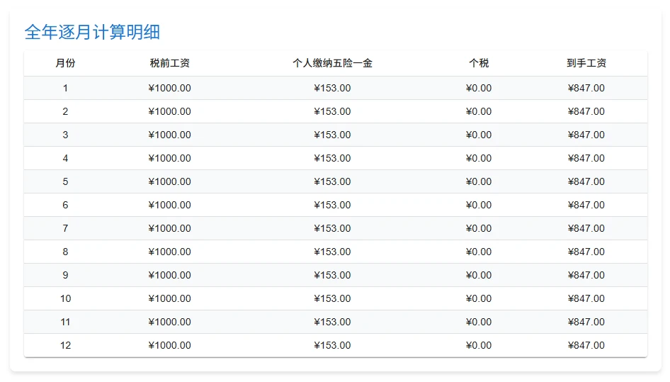 你只需要在1️⃣处填写你的每月工资,如果你公司的医保社保等比例不一样,也可以通过下方的2️⃣处功能进行不同程度的调整,调整完毕之后,下方的数据列表就是最终结果了。