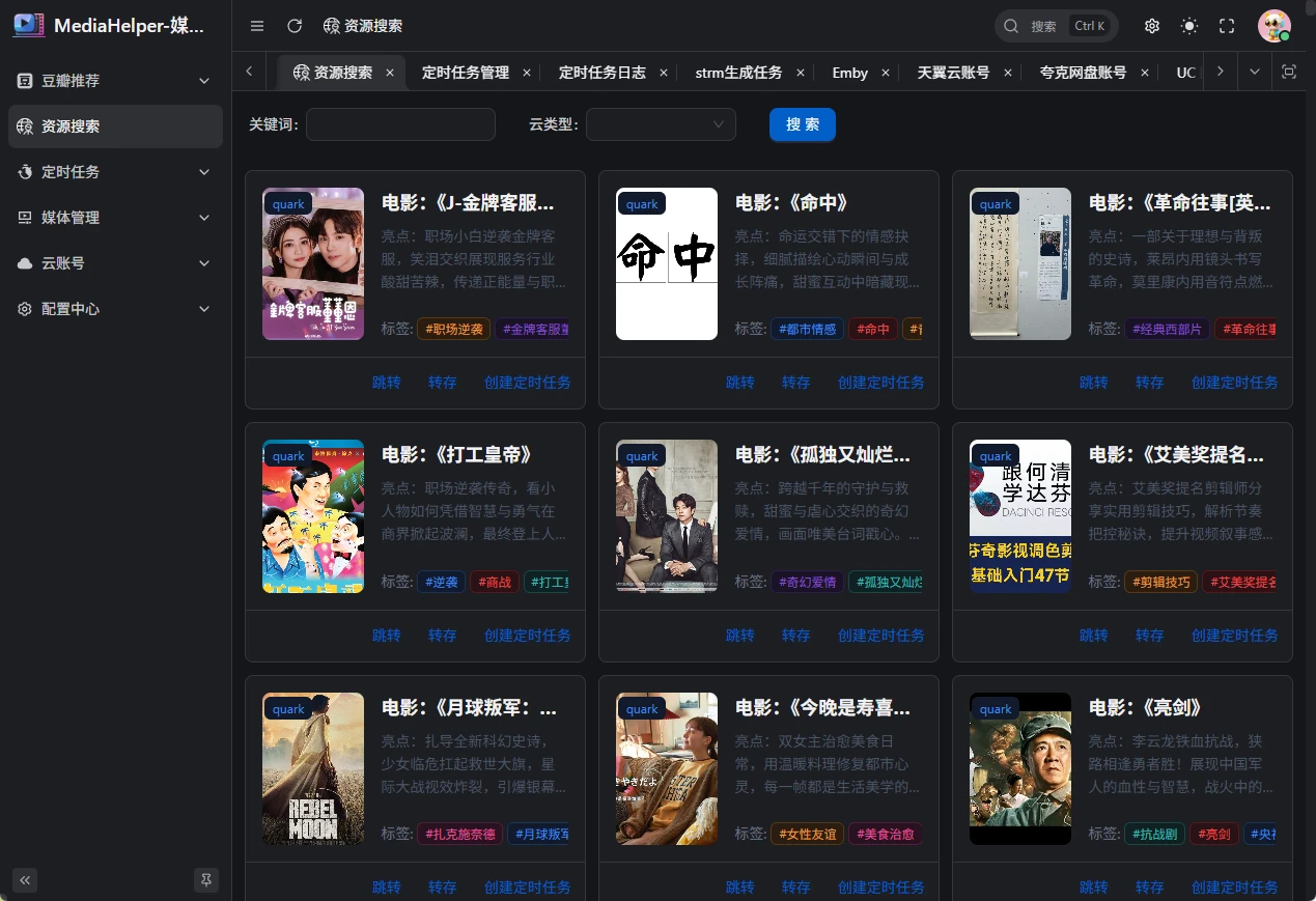 MediaHelp是一个强大的媒体资源管理工具,支持多个主流网盘的资源转存和管理功能。它能帮助你更高效地管理和组织你的媒体资源,是您的私人媒体管理助手。