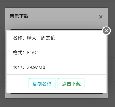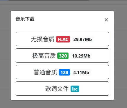 每个歌曲右边提供了在线播放以及下载按钮,点击下载按钮即可看到下面的界面: