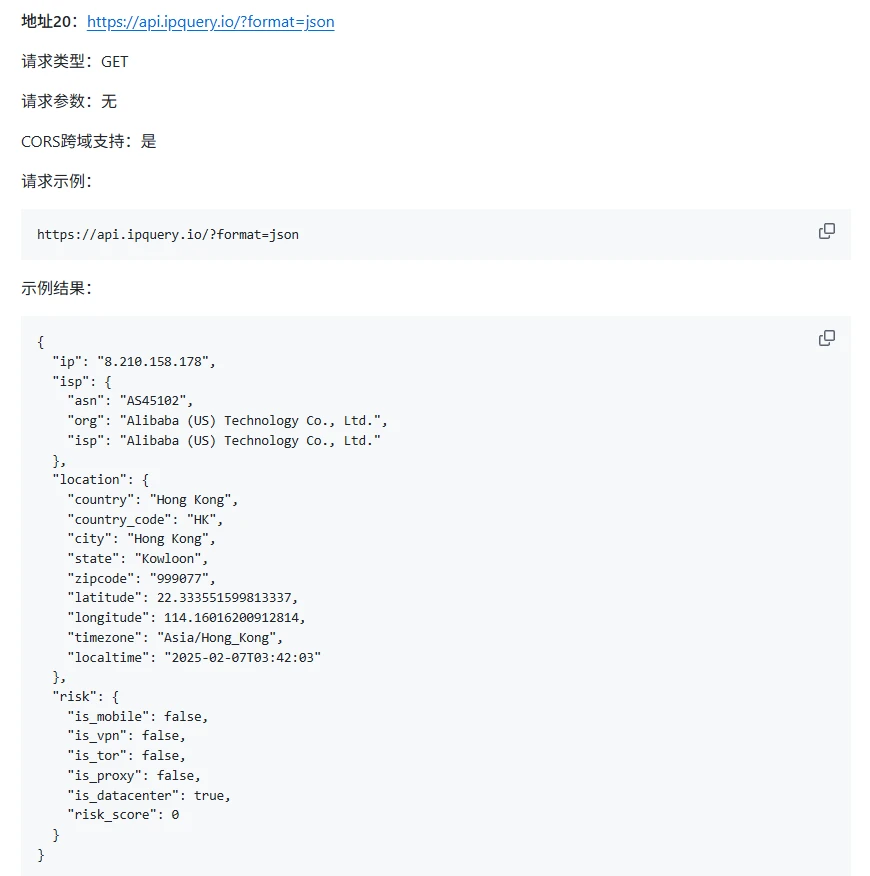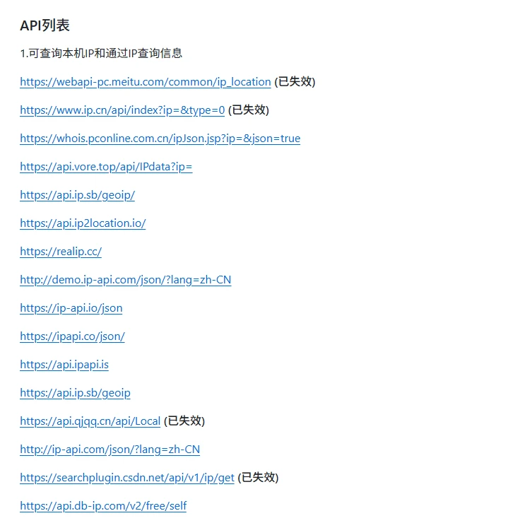 该存储库收集了各种免费的IP查询API,无需配置任何key直接可访问,使大家能够快速访问IP信息,如地理位置、ISP详细信息和网络类型