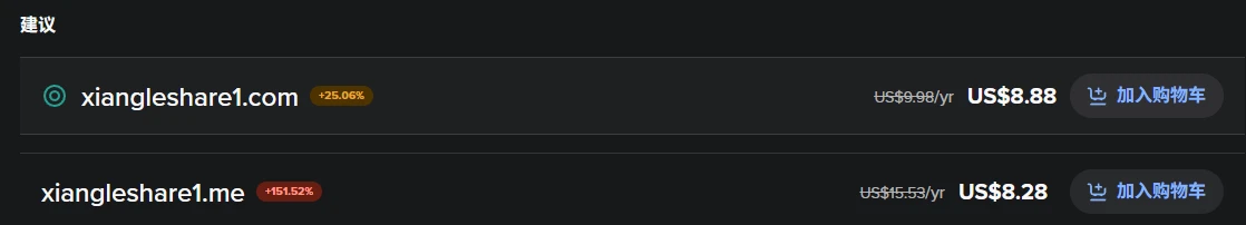 站点提供的价格如上,但是我在未登录的情况下前往站点随机输入一个域名获得的价格如下: