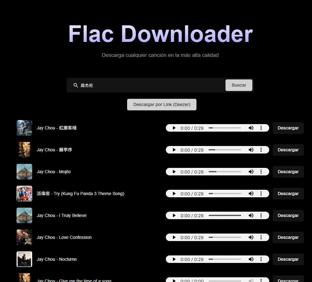 Flac Downloader是一个提供音乐下载服务的网页,专注于以高音质格式下载歌曲。
