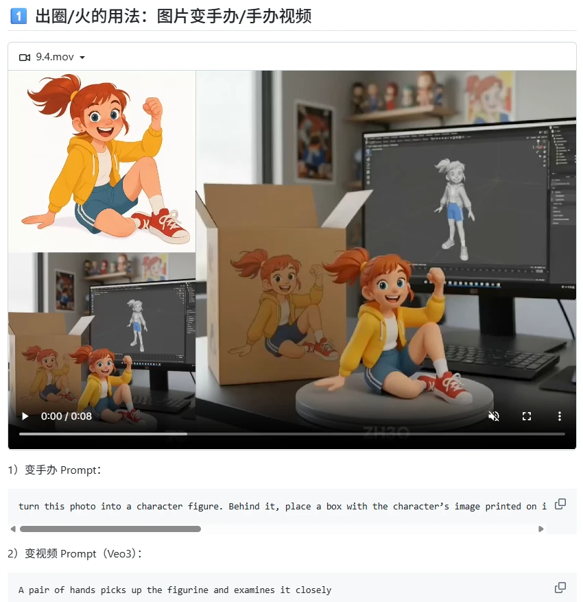 这是一个关于nano-banana的创意玩法大合集,作者通过各种工具和方法,将图片、视频等素材进行创意编辑和转换,生成各种有趣的效果,如图片变手办、人物表情生成、视频人物替换等。