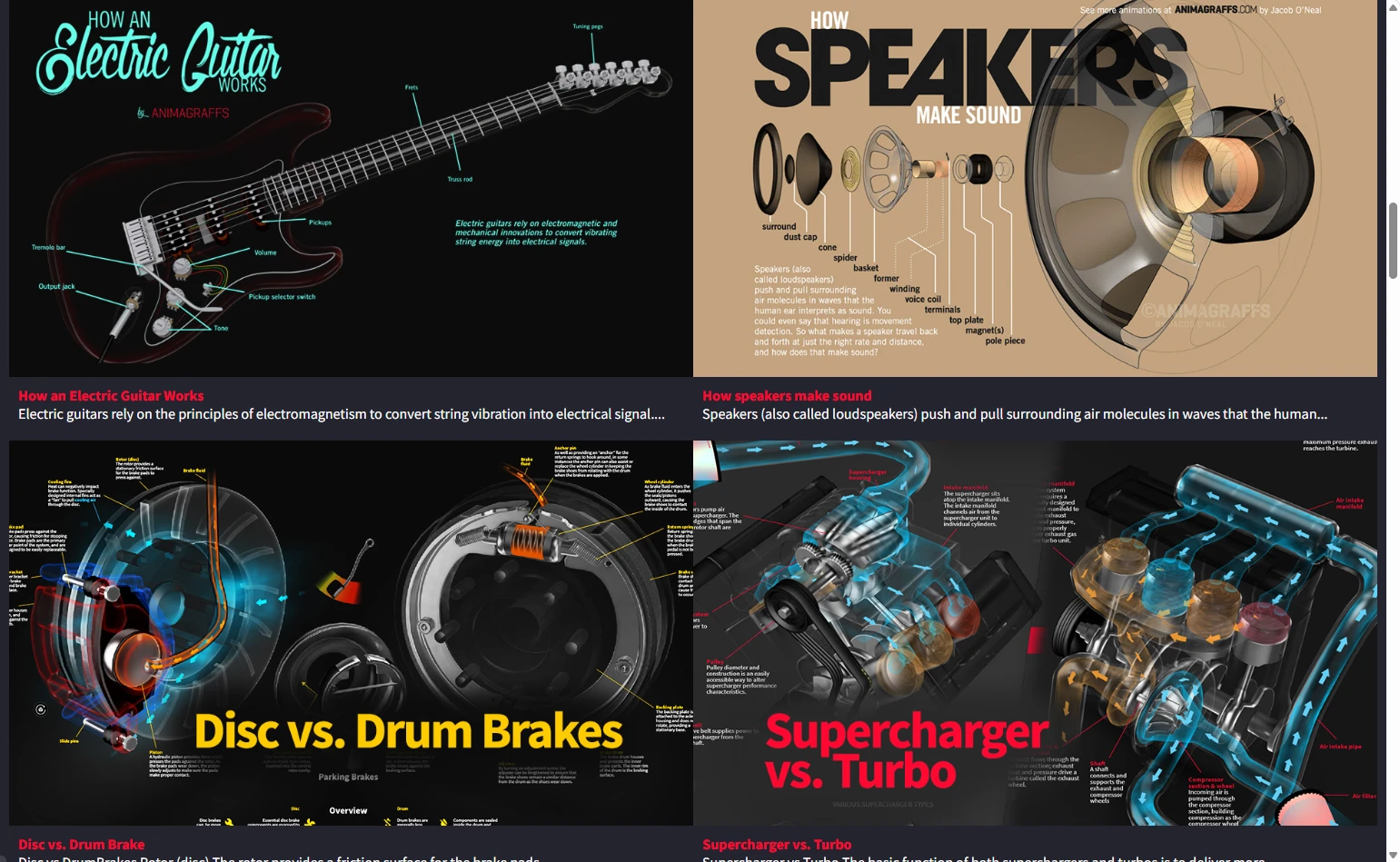 Animagraffs是一个提供各种主题动画信息图表(infographics)的网站,涵盖机械、科技、自然、日常生活等多个领域,通过动画展示其工作原理或内部结构。