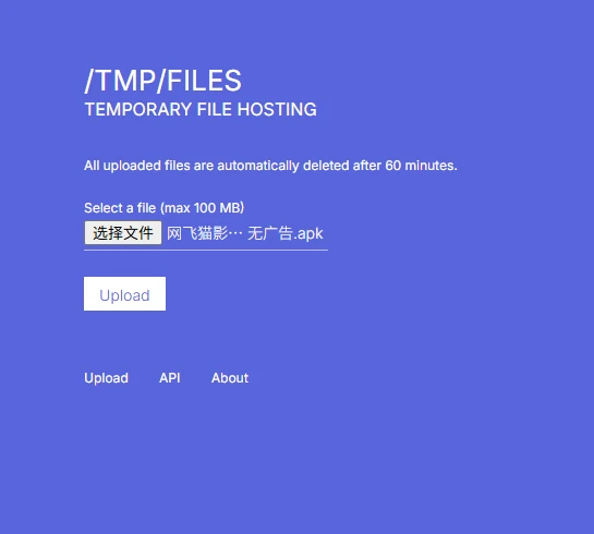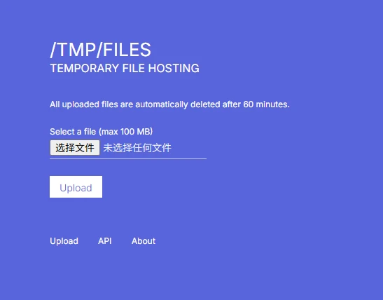 站点主要是一个用来临时上传文件并且分享的站点,通过该站点内上传的文件将会在60分钟内进行删除,同时也提供了相关的API接口给开发者们调用。