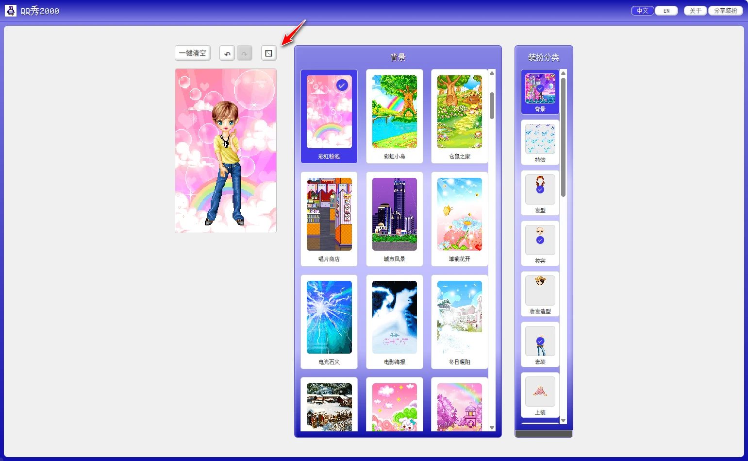 点击之后站点会随机给你配一套QQ秀,但是是否合理就不知道了,点击站点右上角的「分享装扮」按钮即可获取一个独立的链接用来分享其它用户。
