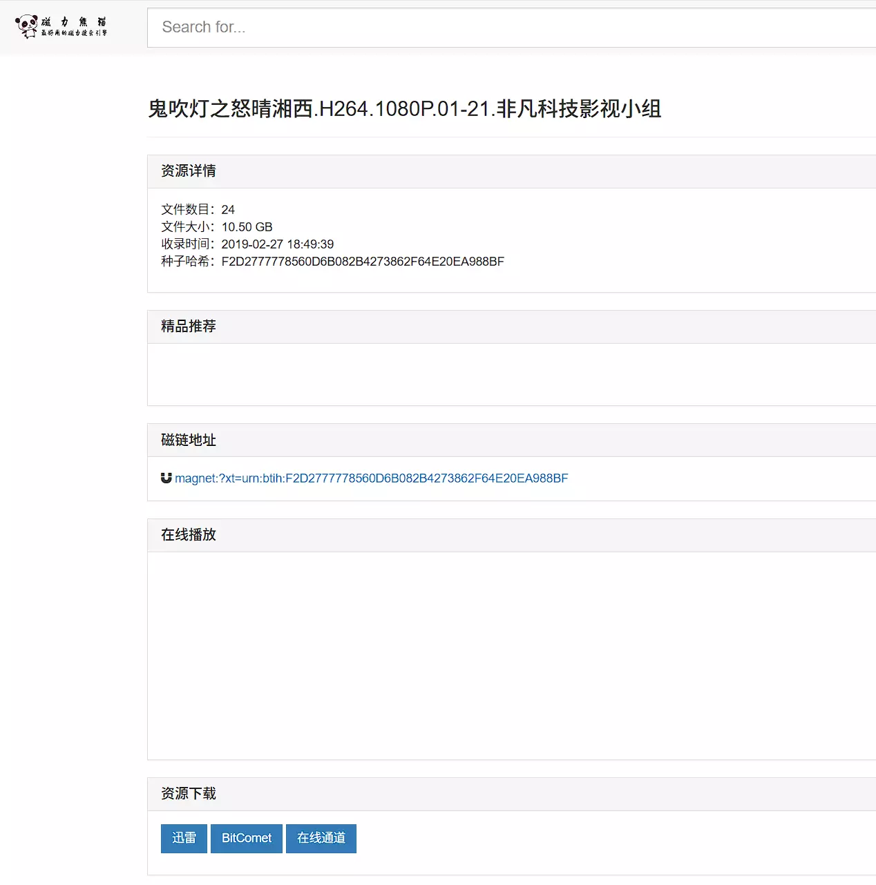 整体来看,站点是一个比较常规的磁链搜索站点,功能相对来说较为全面,基本覆盖了常规磁链站点需要的内容。