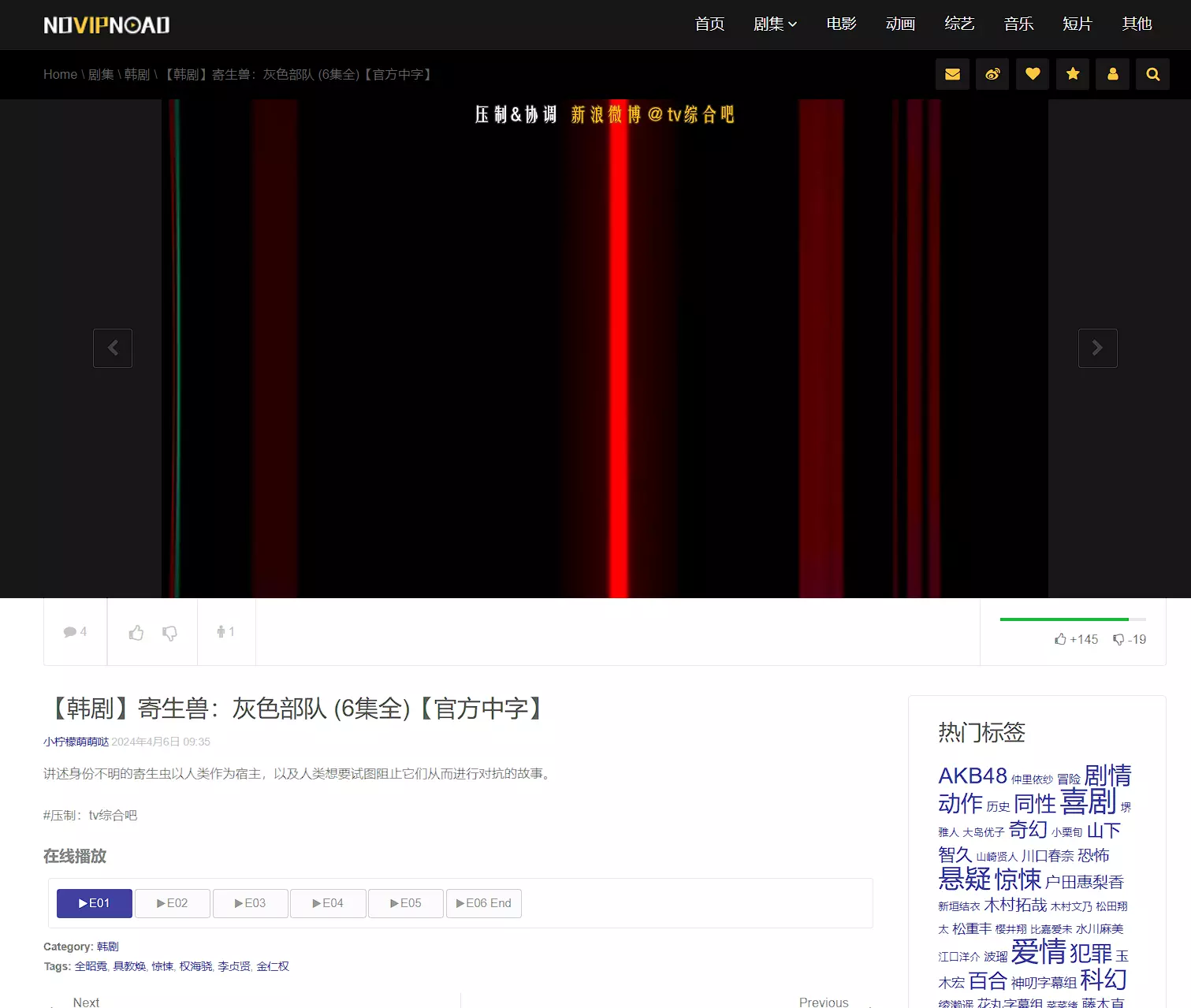 我后来才注意到,站点的logo其实是“no vip no ad”,也就是无VIP无广告,看来这个站长是真的良心了,算是影音在线播放的一股清理了。