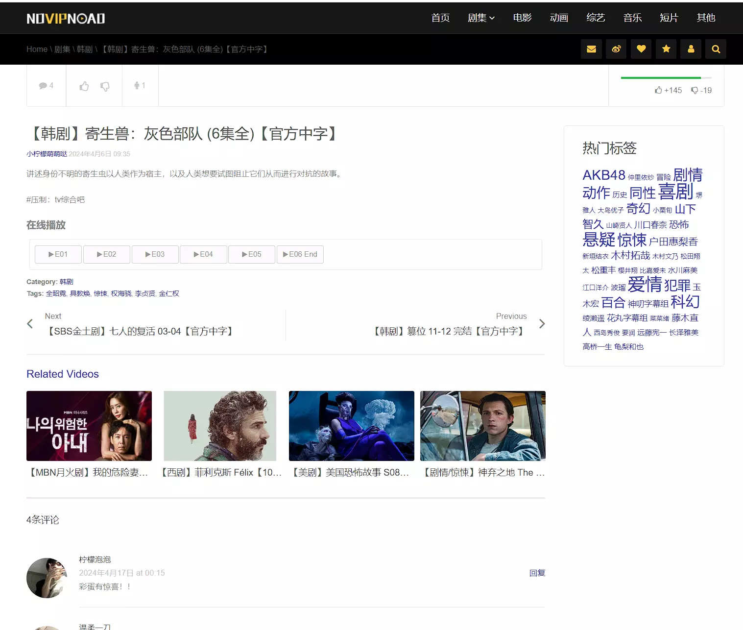 终于找到一个新鲜一点的站点了,站点虽然也是专门看海外剧的类型,但是相比之前的套模板站点,感觉有点不一样,主要是评论区居然有人。