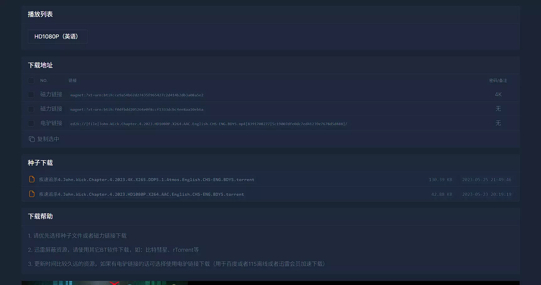 该站点提供了在线观看以及免费下载两种方式,具体可以看截图。在线观看就是常规的播放源来进行播放,质量和速度都还不错,播放源也比较多,资源的下载方式提供了电驴和磁链两种方式,不过根据访客的反馈来看,电驴或者磁链,最好是通过离线来完成,或者说通过115来解决是最佳的。