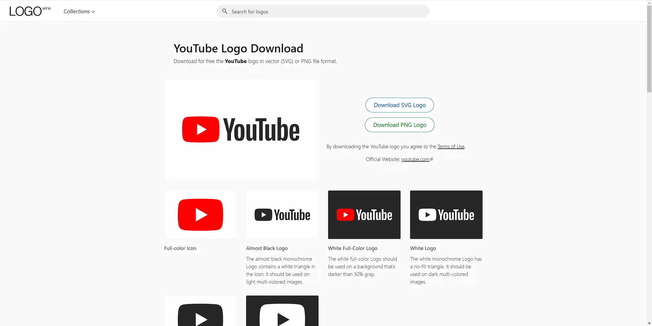 图标提供了SVG和PNG两种方式,除了最传统的图标,也提供了一些比较独特的图标,比如YouTube来说,你可以前往下方看到除了白底意外还有黑底的图标,算是比较人性化了。