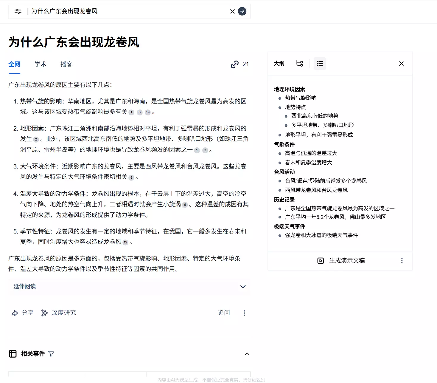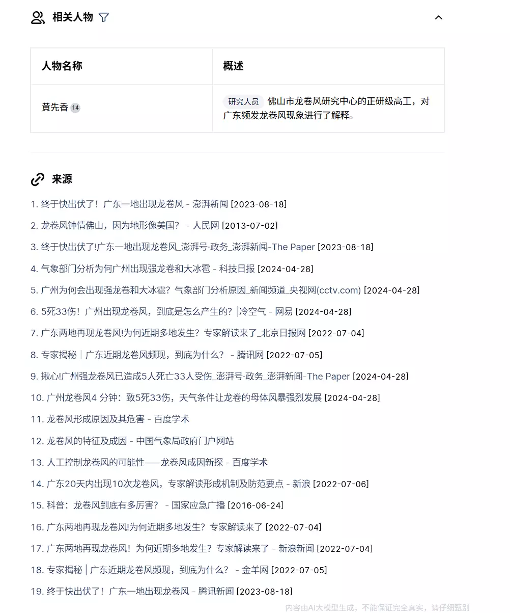 搜索结果界面中,给出了各种数据来源,是我见过最全面的来源介绍了,我个人觉得这一个AI基本可以够用了。