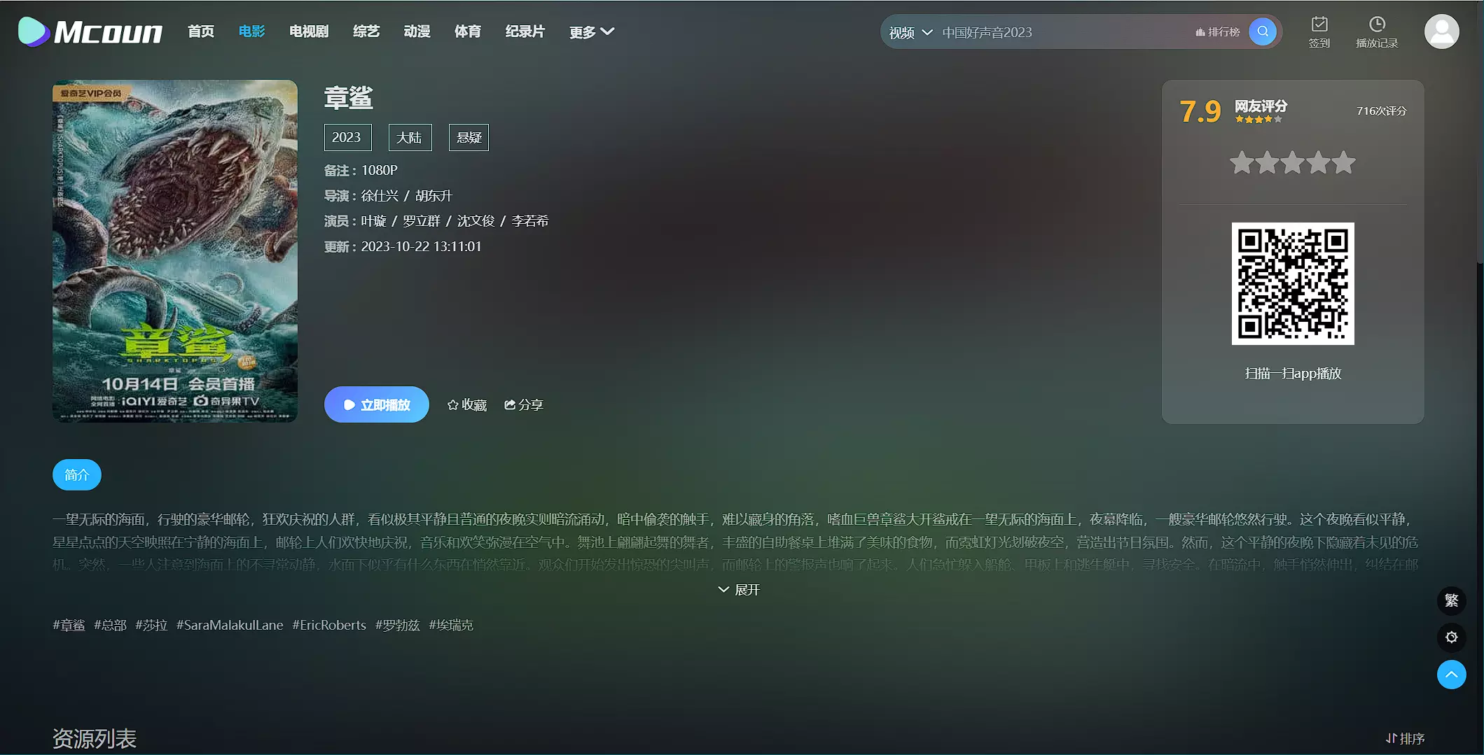 其次就是该站点的播放源就两个,和之前推荐的站点相比播放源少了不少,不过加载速度和播放速度都不差,随机测试了几个,播放上面也没有问题,可以作为一个选择收藏。