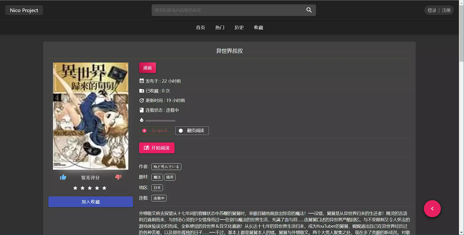 站点目前采用的是点击查看下一章,之前介绍了一个漫画站点是那种无限滚动的,也就是只需要鼠标不断往下滚动即可自动跳转到下一个章节。