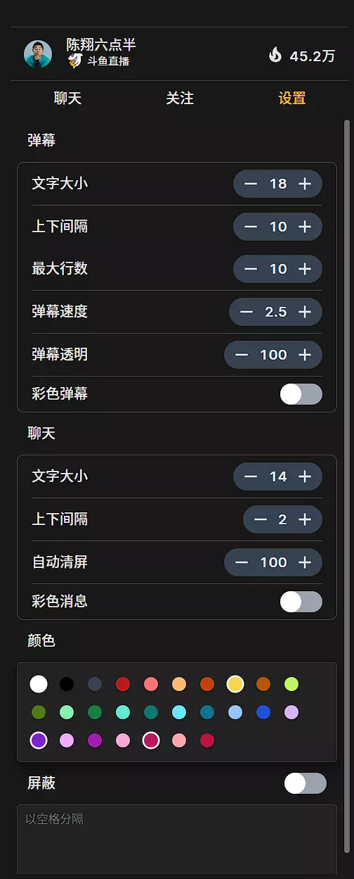 除了常规的直播内容之外,该站点也接管了直播的弹幕,聊天以及关注信息,基本上能用的都用了上了。