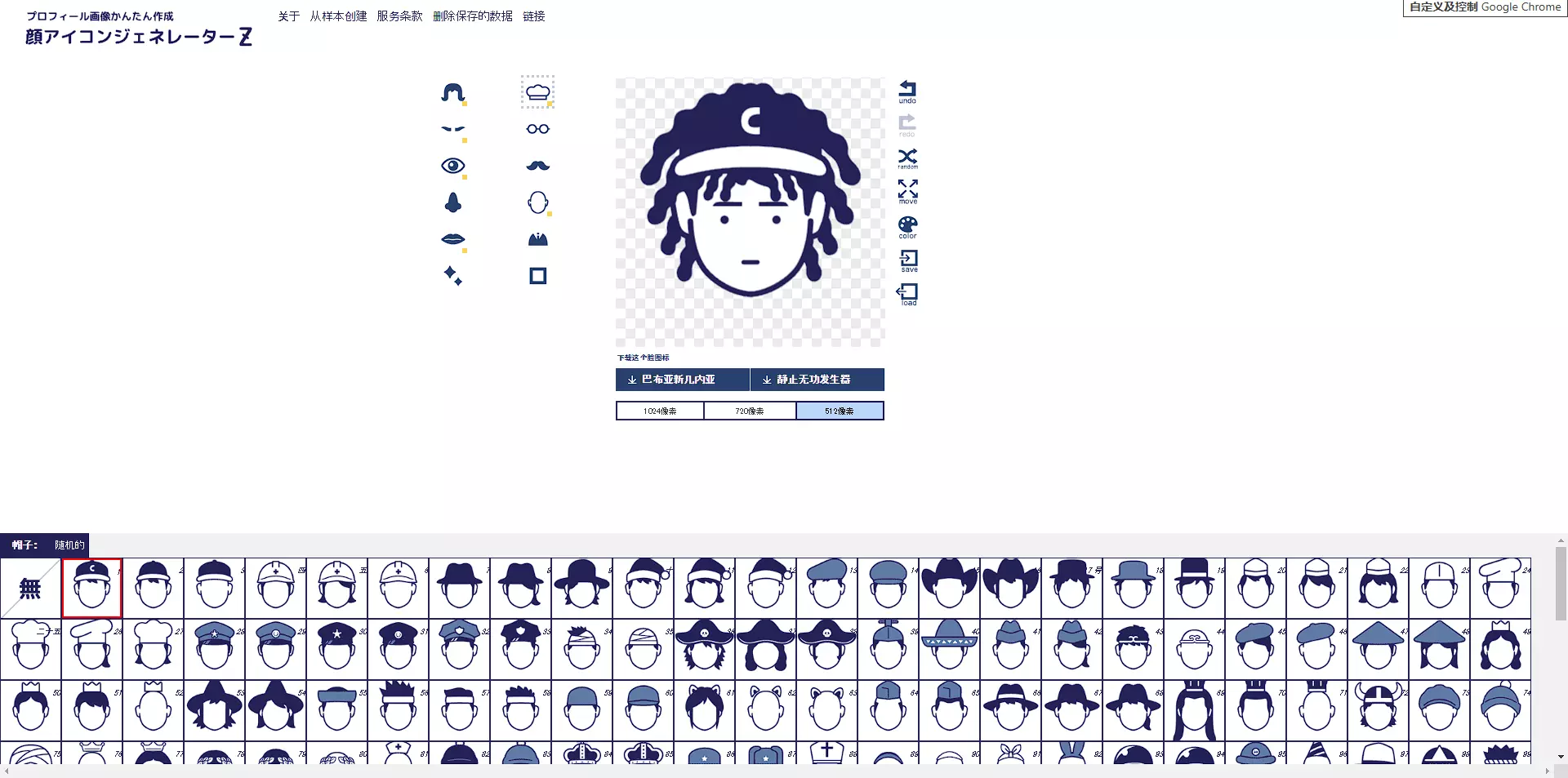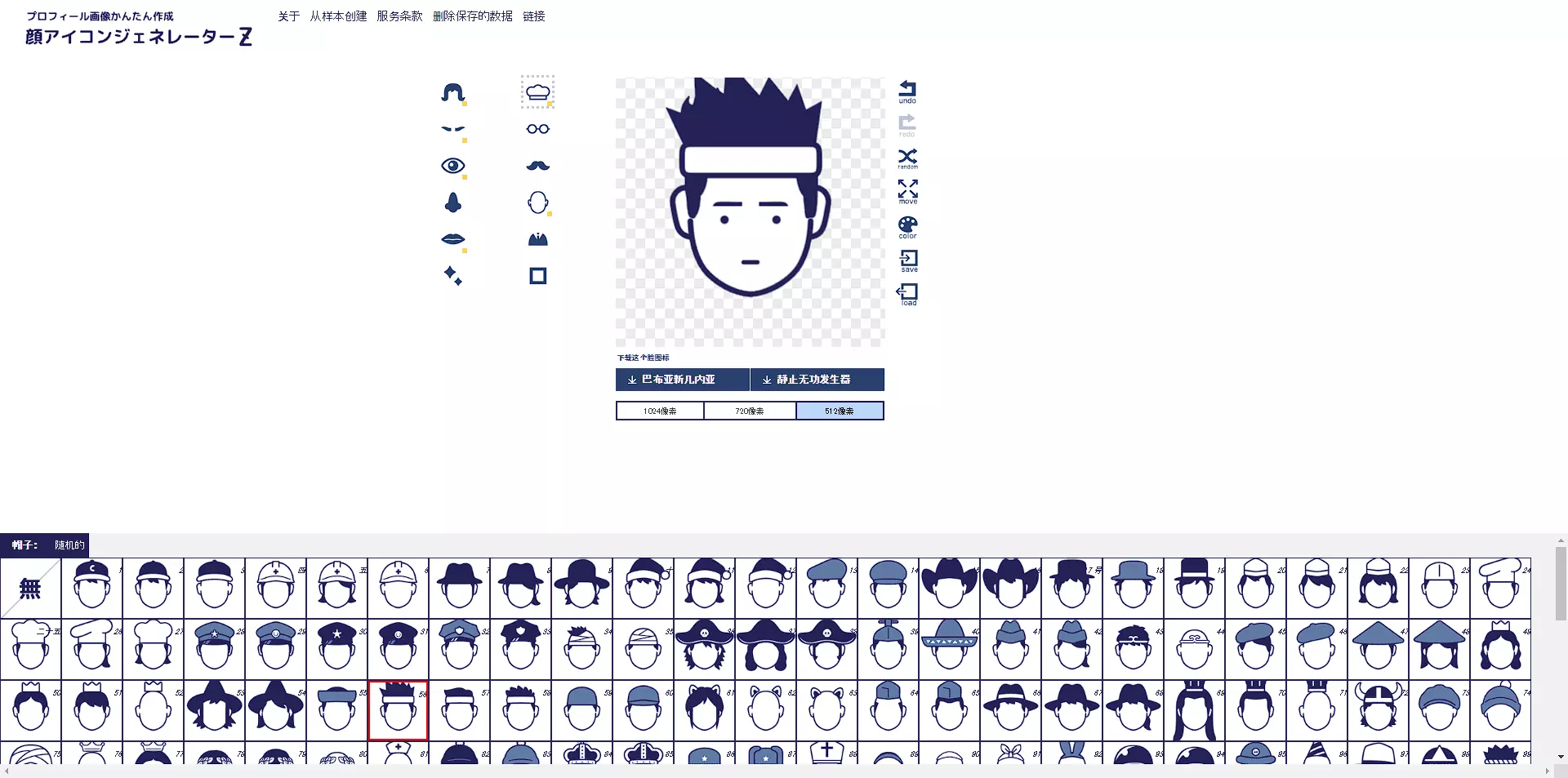 站点提供的细节还是很多的,除了常规的面部结构选择以外,还有就是帽子、边框、背景、颜色等等,基本满足一个制作头像的需求。