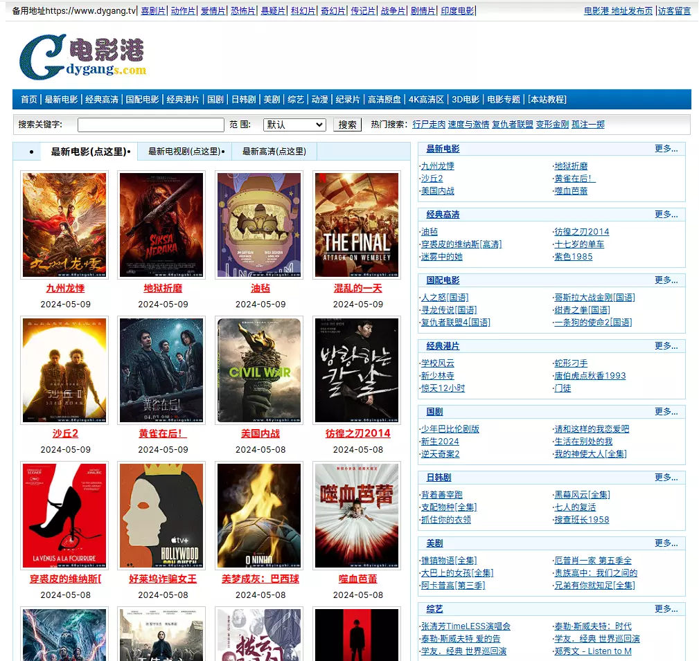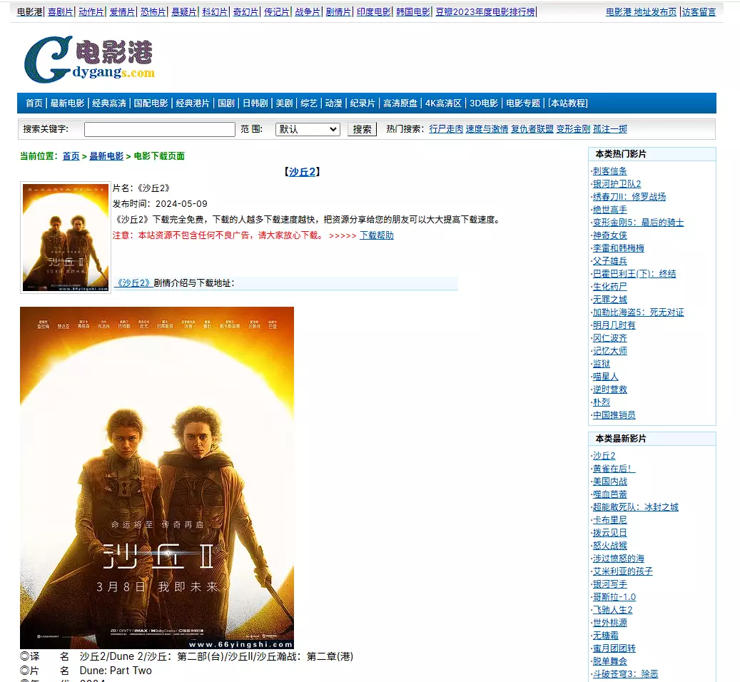 这个站点看页面布局应该是有些年头了,目前的影视下载站点布局基本都是比较花哨的或者大图,这个站点主要是文字为主。