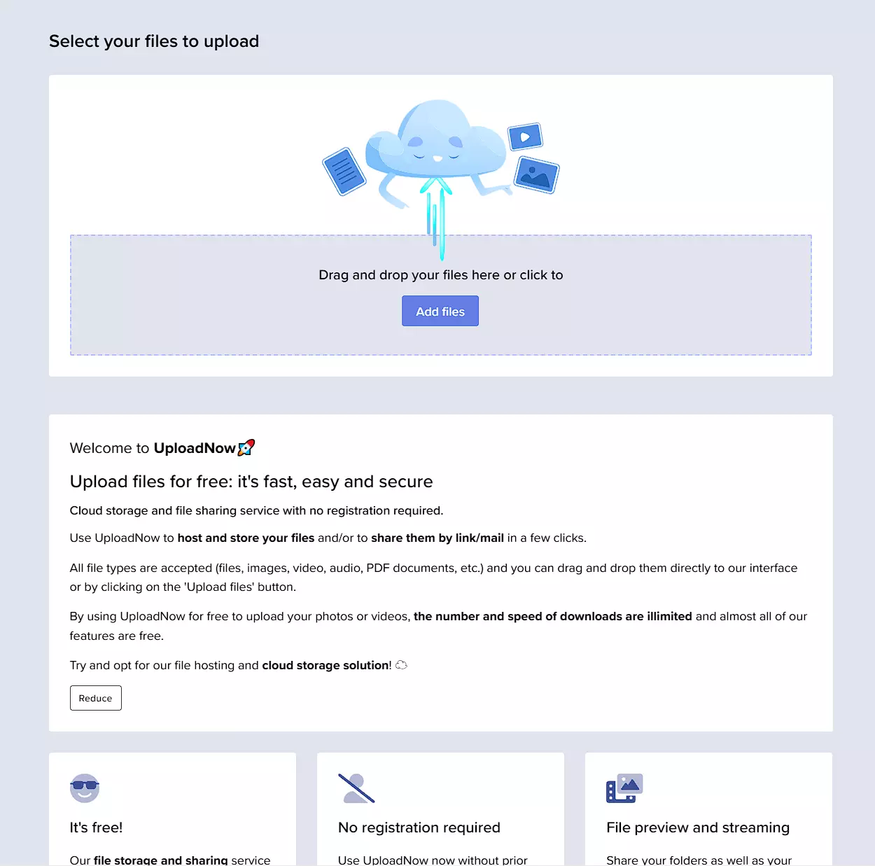 这个站点免费且根本不需要登陆的免费云盘站点,用来作为临时传输文件是一个不错的选择,但是不要作为主力盘,毕竟国内的网盘还是挺多的,即使是免费空间也挺大的,就是下载速度有点堪忧。