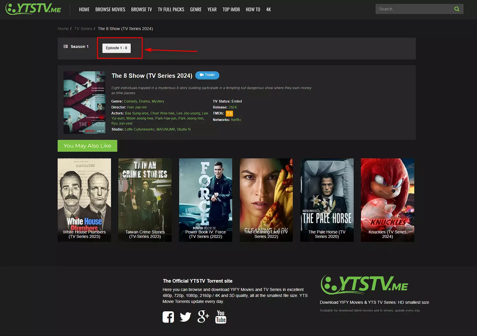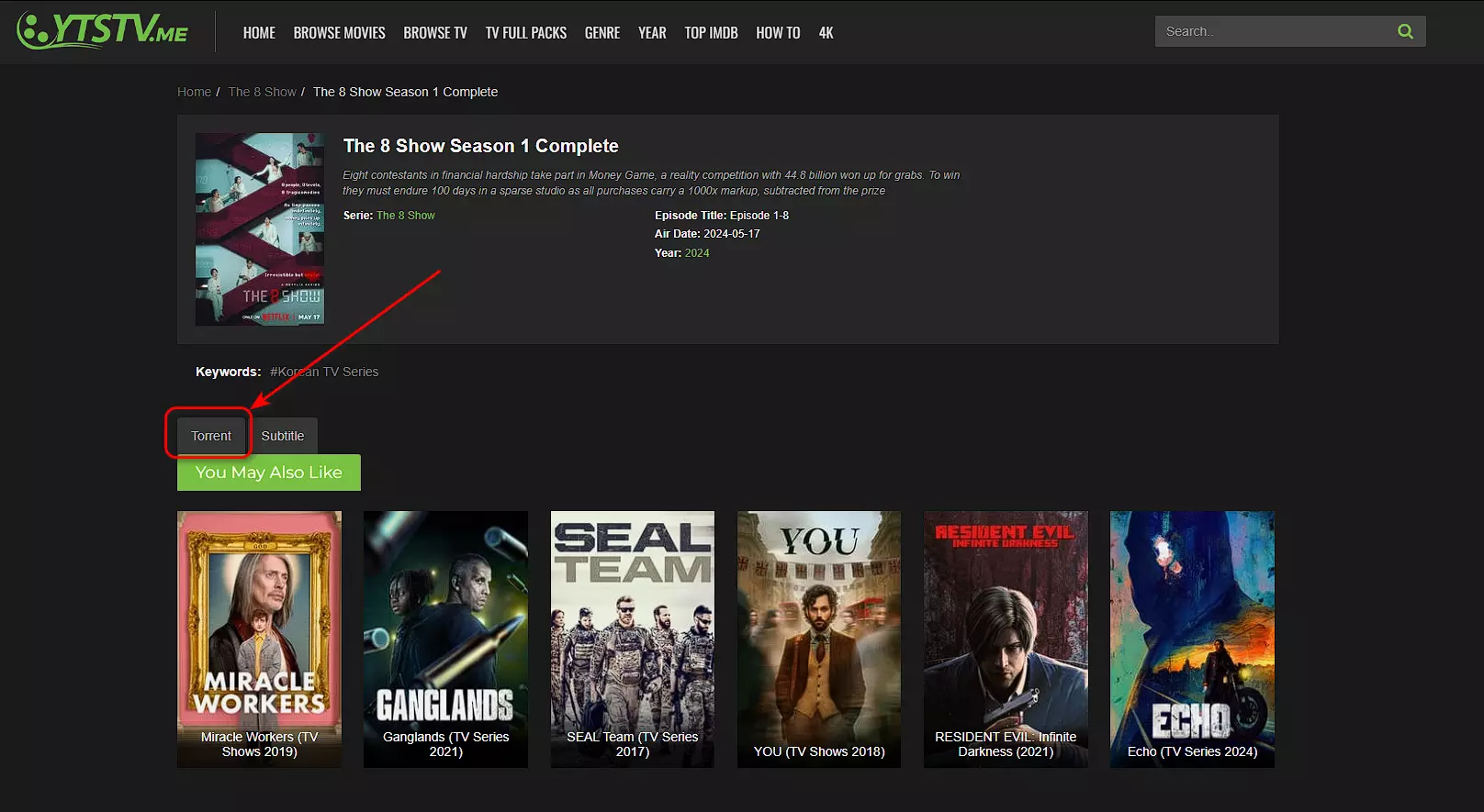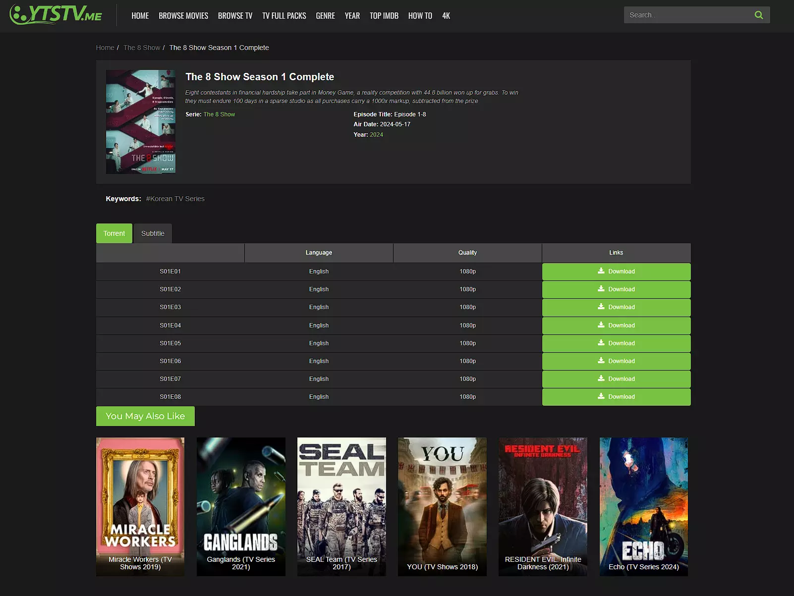 站点和YTS电影站点的布局基本类似,只不过该站点只有电视剧,电视剧的内容更新非常及时,基本能覆盖比较新的剧集。