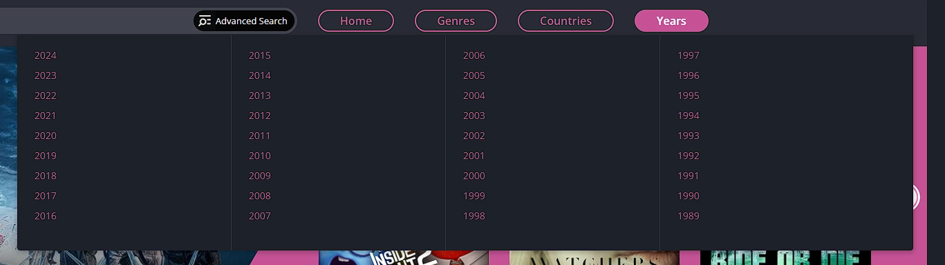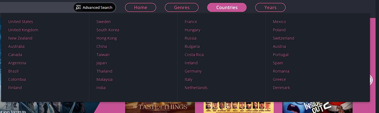 其次,导航栏也是可以好好利用来的内容,导航栏中已经将全站180000部影片内容进行了分类,分类方式包含:类型、国家、年份。基本上这三个分类可以筛选出大部分你需要的内容了: