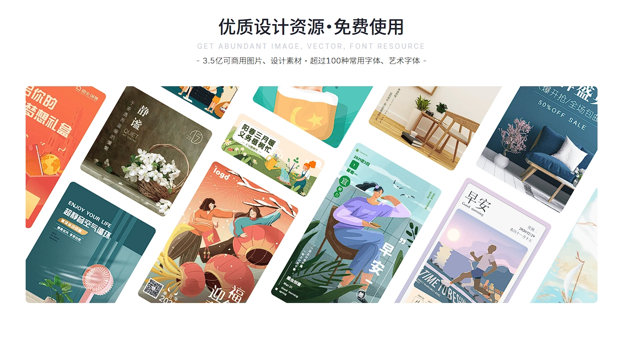 分类列表页面,看上去还是不错的,素材的搭配也是比较符合自媒体用户或者宣传图的那种,随便选择一个进入编辑,即可看到下面的界面了: