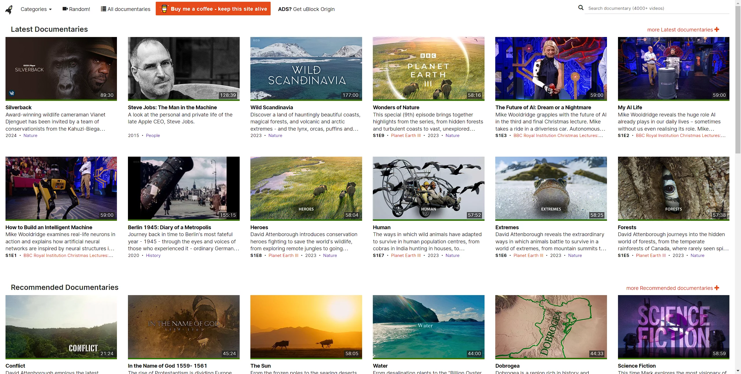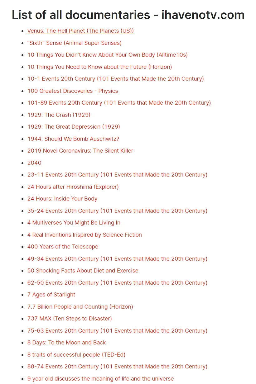 简单的看了一下,这个站点保存的纪录片内容真的是非常多,我这里肯定是没法知己诶全部复制进来的,想要了解的话可以直接去看看。