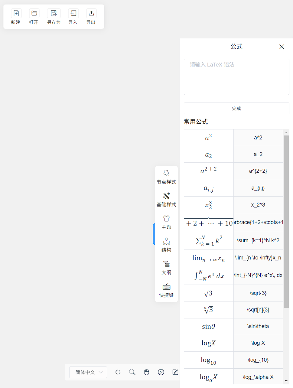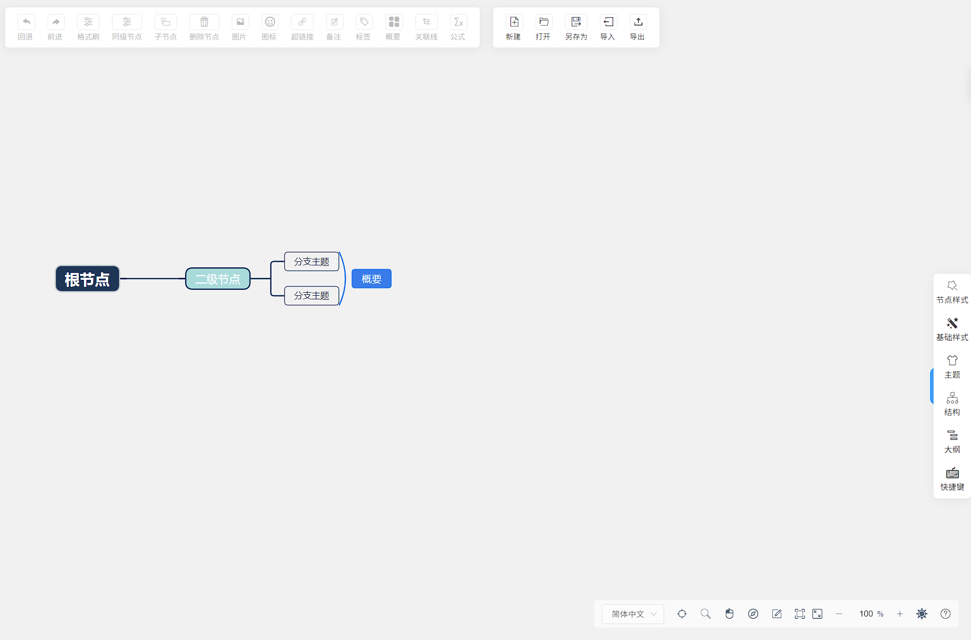 节点内容支持文本(普通文本、富文本)、图片、图标、超链接、备注、标签、概要、数学公式