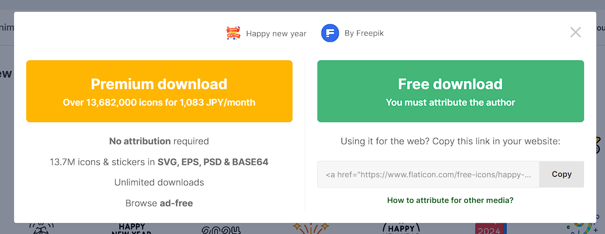 免费会员:您必须添加 Flaticon 的链接并注明作者,以换取使用图标的权利。为了注明作者,如果图标是由 Flaticon 制作的,则必须使用“Designed by Flaticon”,否则必须使用作者的姓名。