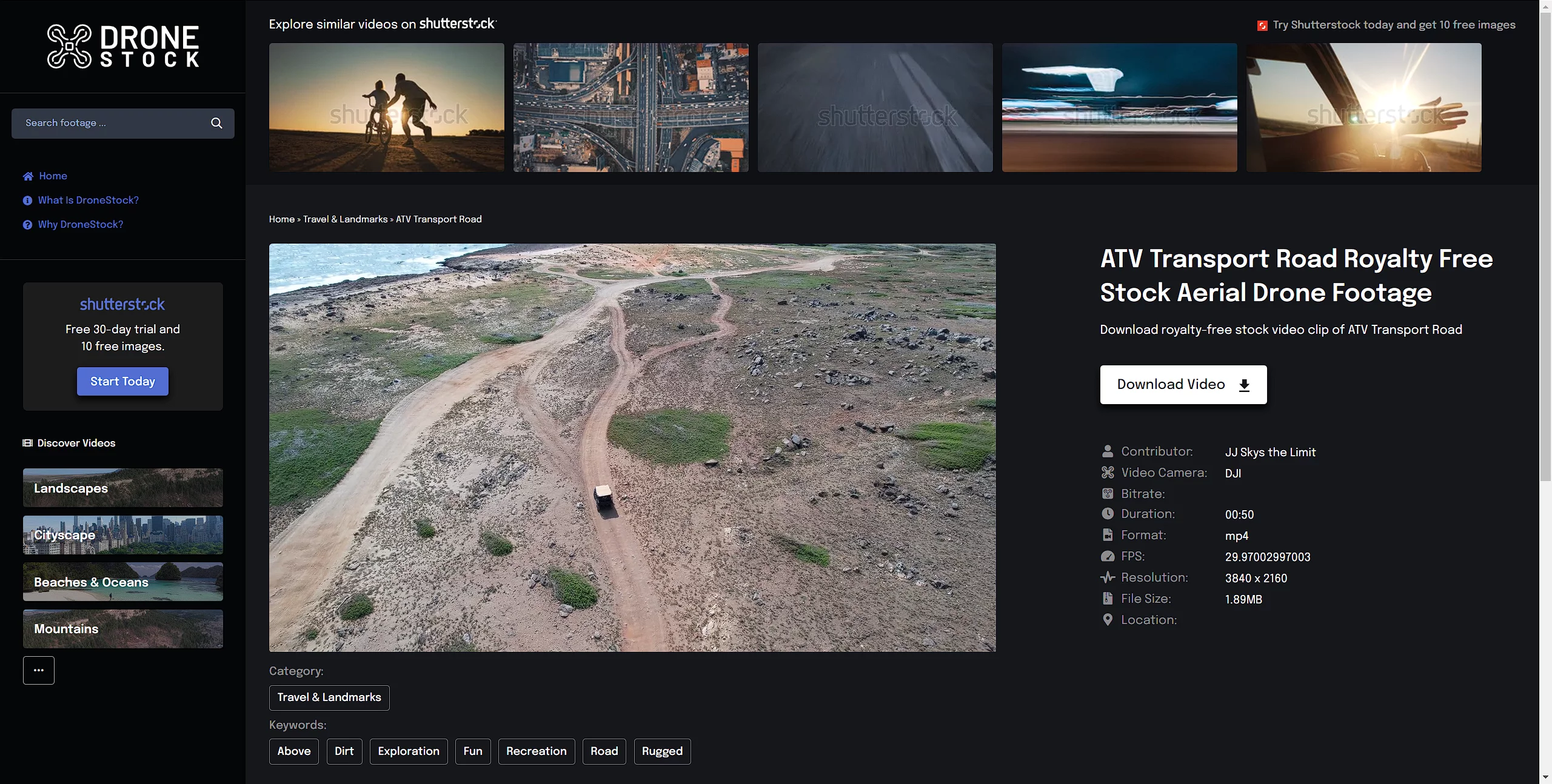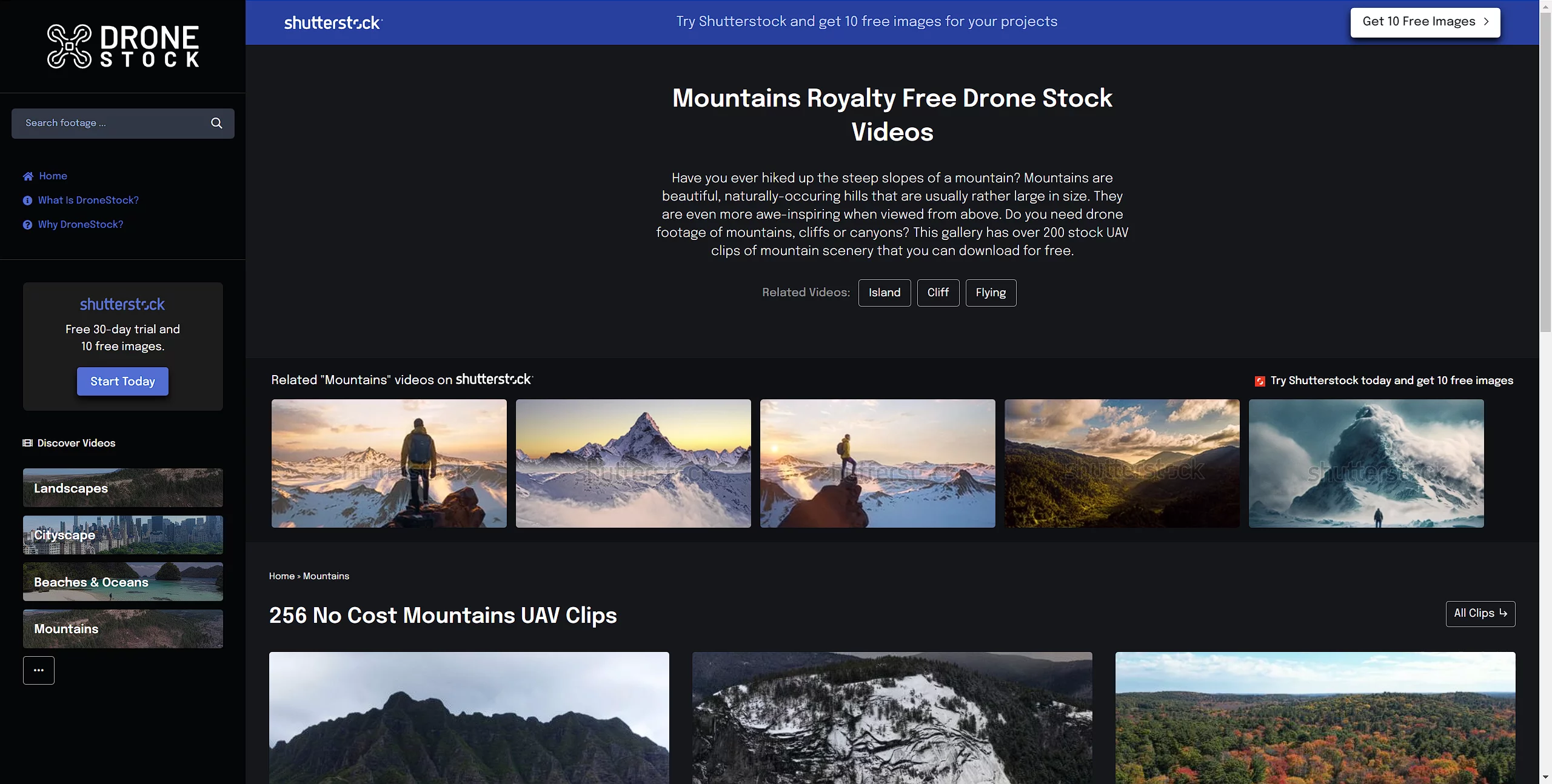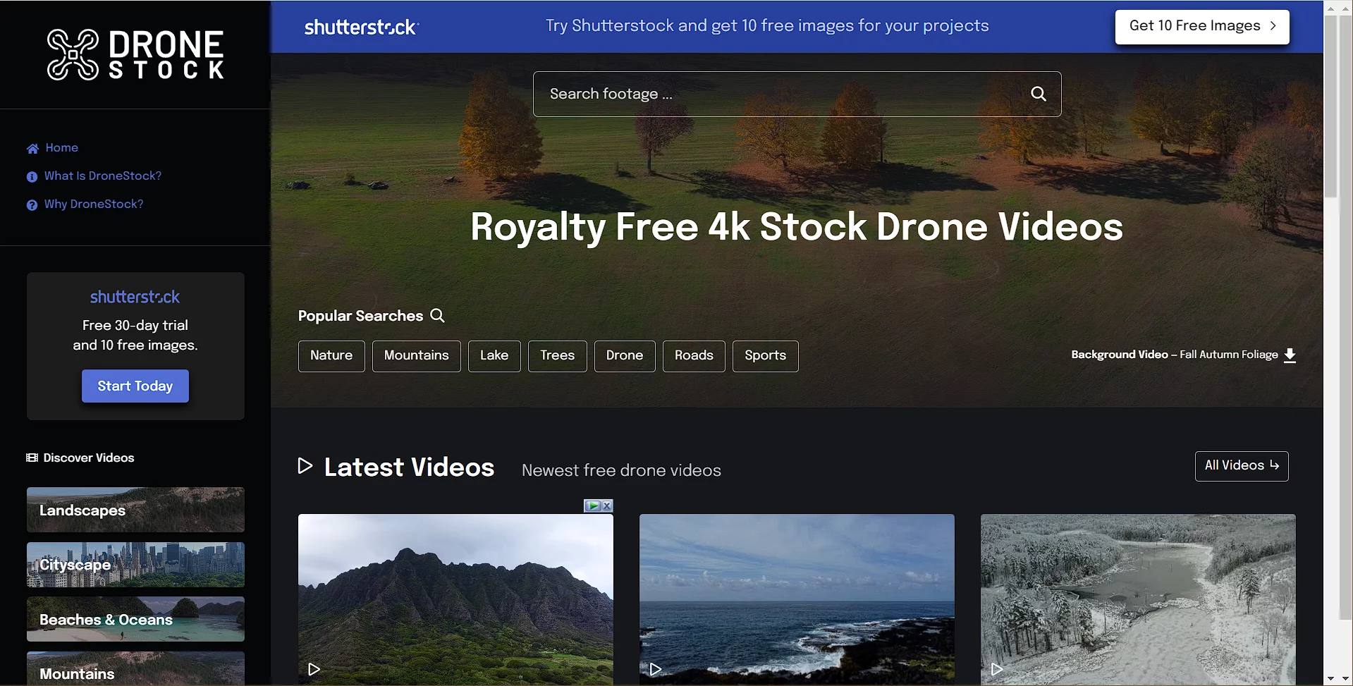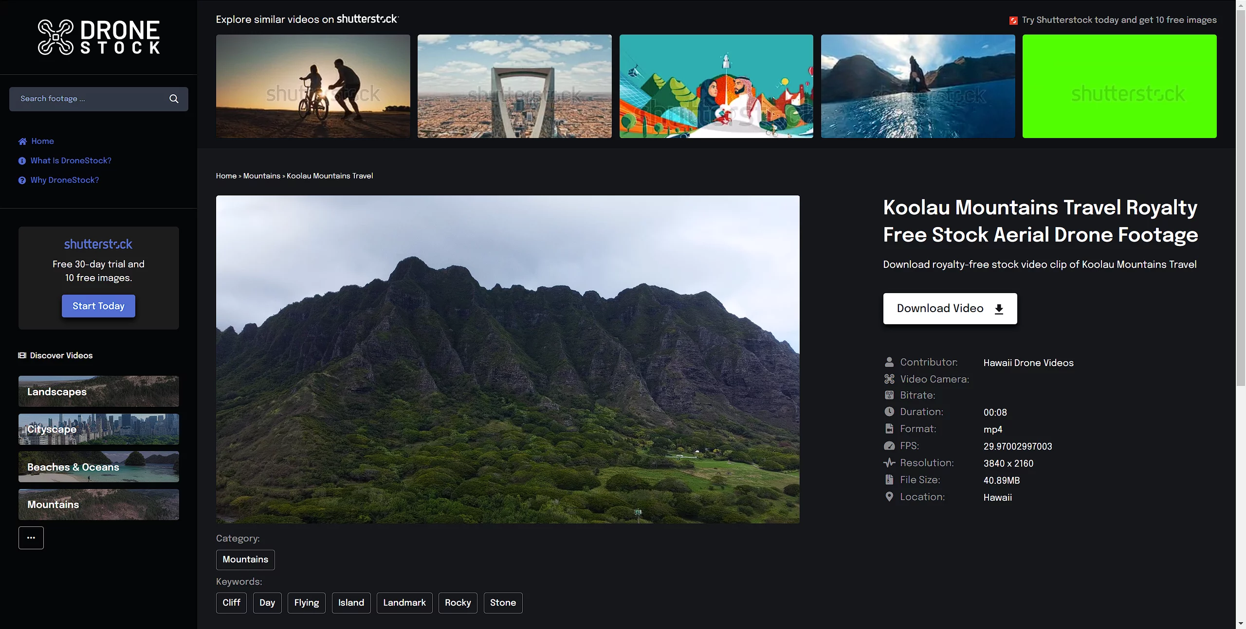 Dronestock是一个提供无人机航拍视频片段的平台,在这里你可以免费下载4K高清素材。这个网站拥有多种类型的无人机航拍视频库,内容丰富,包括自然风景、城市风光、海滩和海洋、山脉等等。