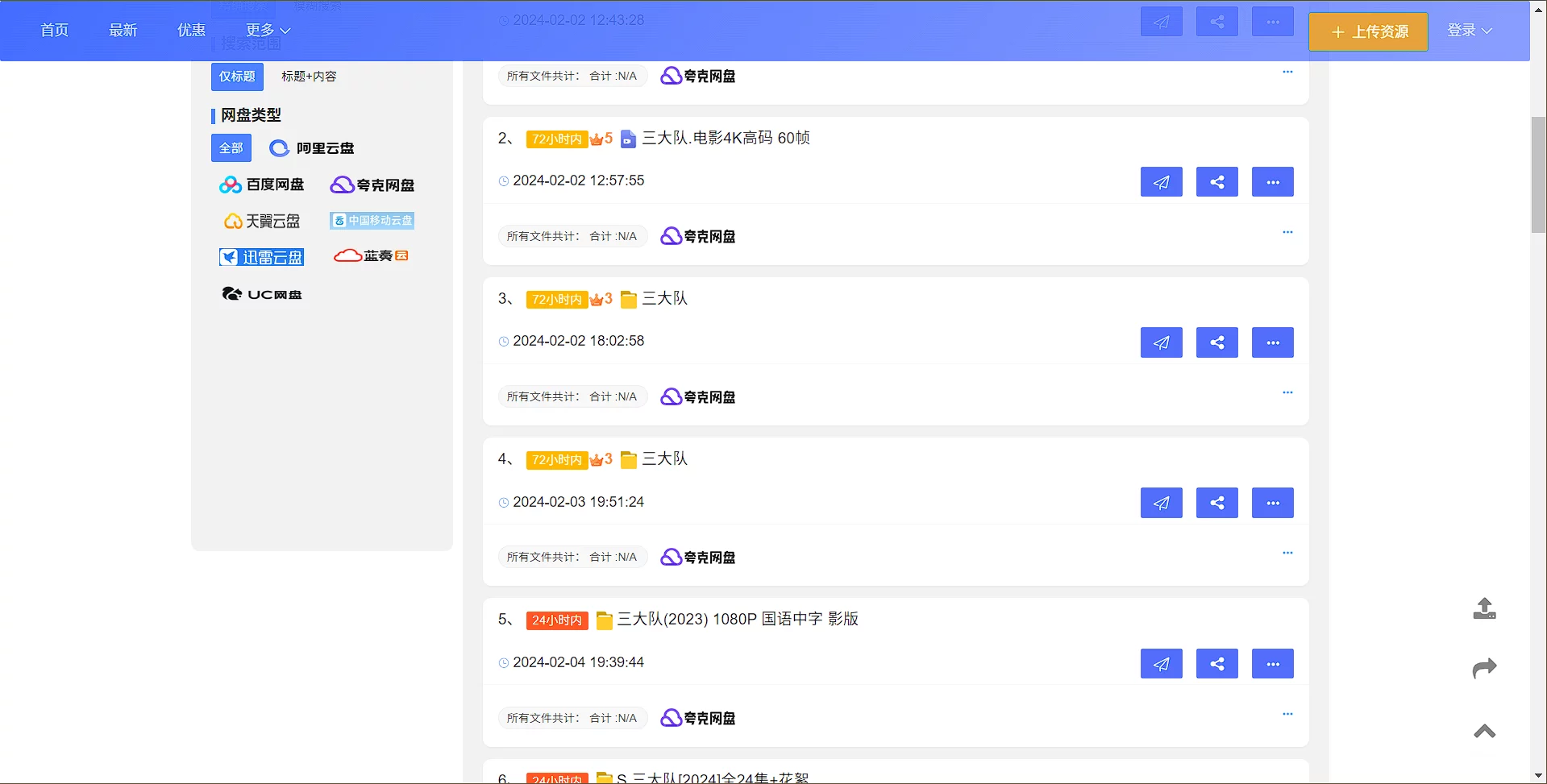 这个站点是一个用于搜索不同网盘内容的引擎,例如阿里云盘,夸克网盘,百度云盘等。用户可以使用它来查找存储在这些网盘上的各种资源。