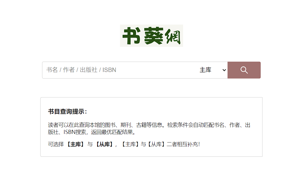 通过该站点读者可以查询到图书、期刊、古籍等信息。检索条件会自动匹配书名、作者、出版社、ISBN进行搜索,并返回最优匹配结果,从而方便读者快速的找到自己需要的资源。在使用时,你只需要在提供的搜索框内输入你想查询的信息,比如可以是书名、作者、出版社或者ISBN,系统会自动匹配相关信息。