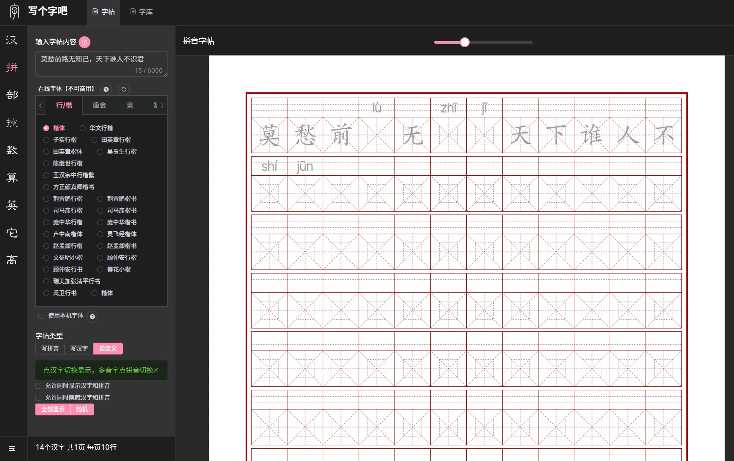 关于在线字帖这类的工具站点介绍的不在少数,不过今天见到的这个站点确实是值得推荐,不论是在布局、UI、功能上面相比之前的同类站点,完全不是一个档次啊。