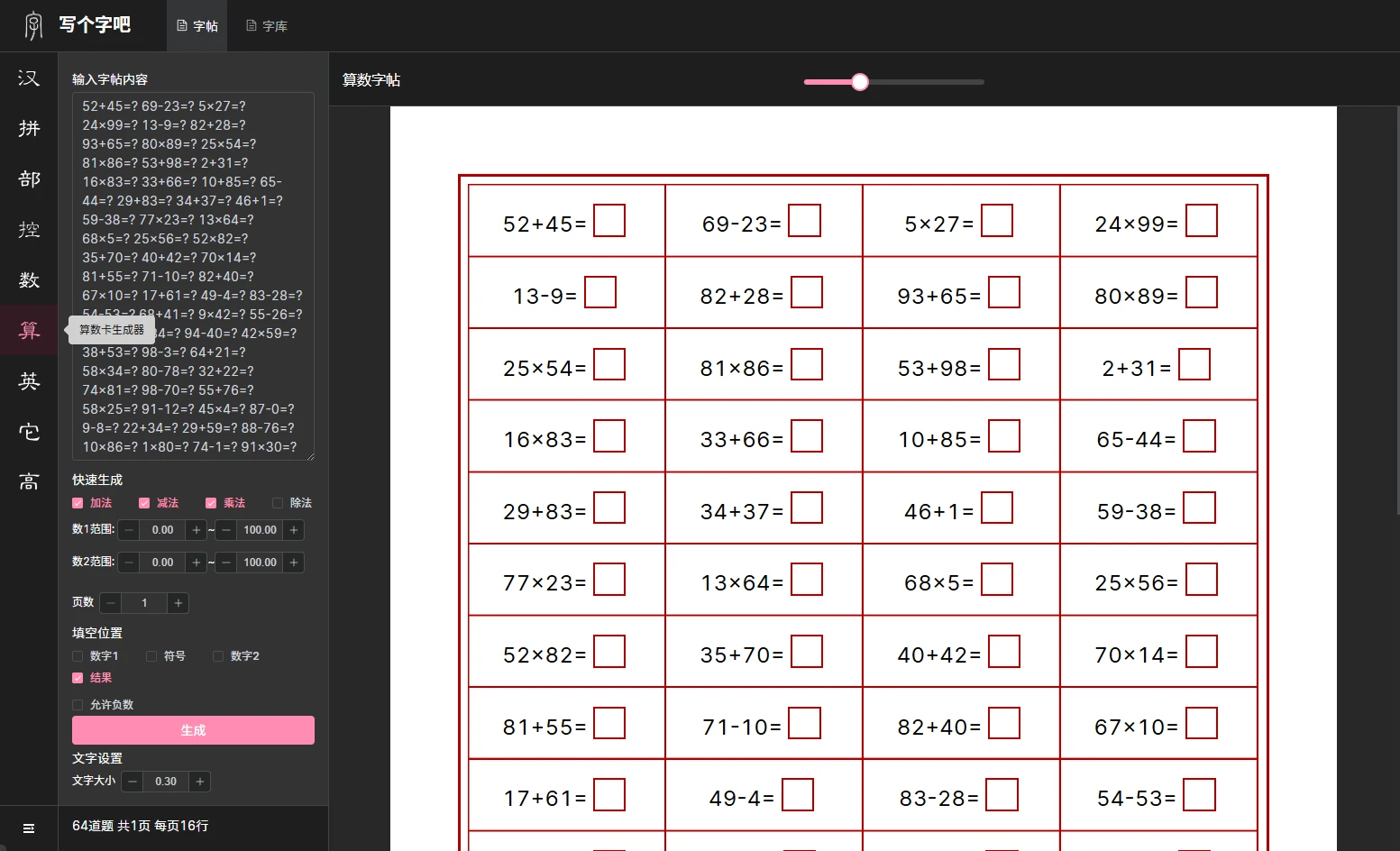 送给小朋友们的新年礼物:习题打印生成器