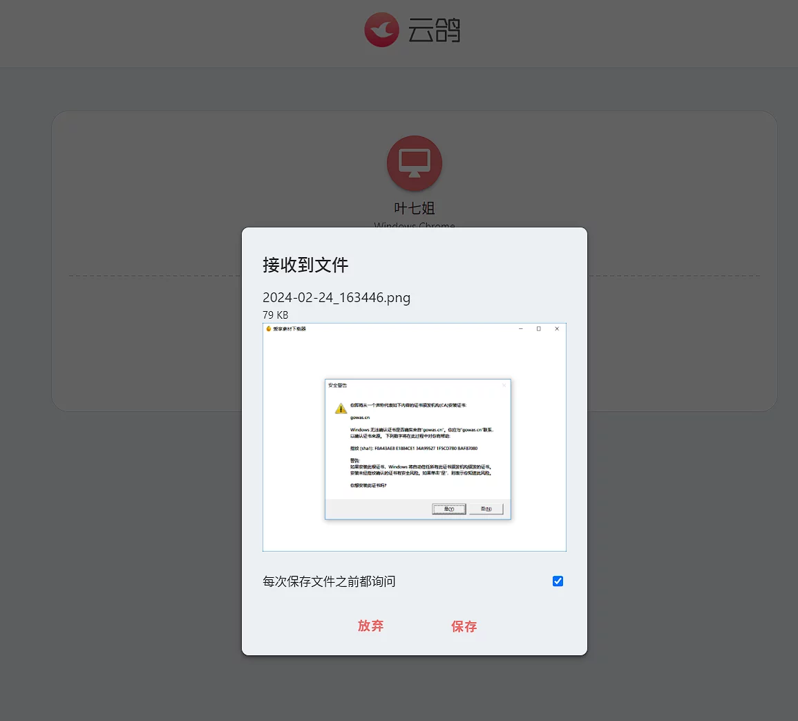 经过简单的测试,无论是内网还是外网之间的传输,速度都是杠杠的,非常迅速,下面的图片都是基于内网进行传输的。
