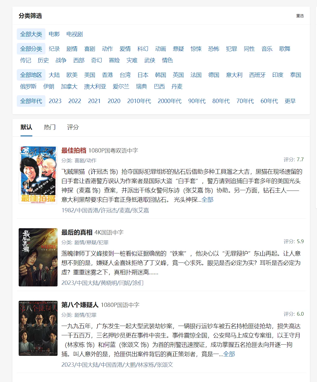 提供各种类型的电影,如剧情,悬疑,犯罪,动作,冒险,科幻,历史,喜剧,恐怖等类型的电影。