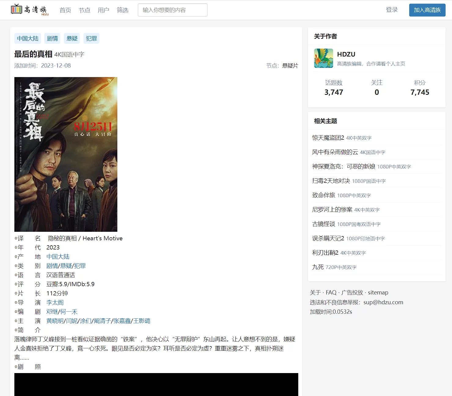 同类站点很多,这个站点整体来说算是不错的,但是不算很优秀,资源选择有点少了,通过最近的列表查看,之前几部主流的影片没看到,所以大家自行选择吧。