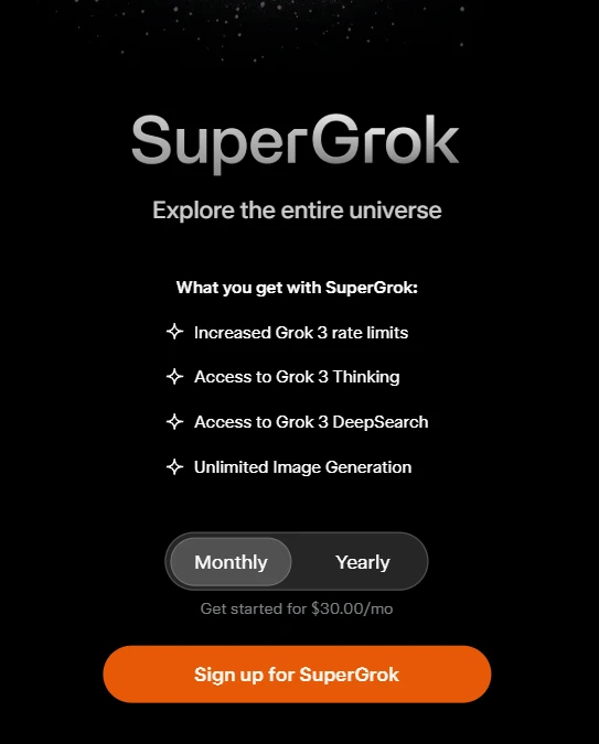Grok 3实在2025年2月17日首次亮相,我个人也是在第一时间进行了体验,直到目前为止,都是beta版本,同时也没有进行任何收费,你可以直接免费使用,不过官方提供了付费项目: